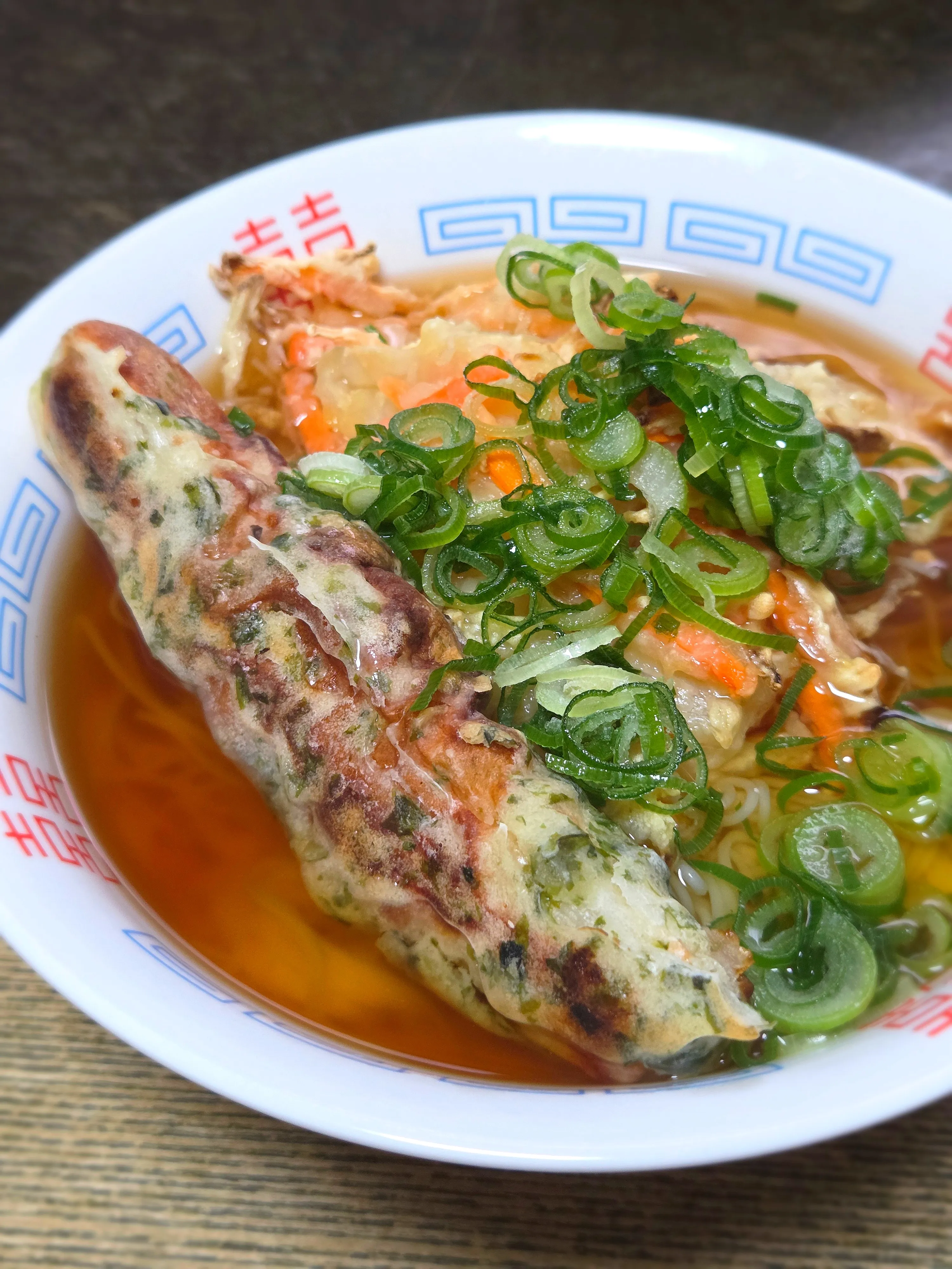 #ランチ #男の手料理 #そうめん #揖保乃糸 #揚げない #かき揚げ #ちくわ天 #青ネギ
