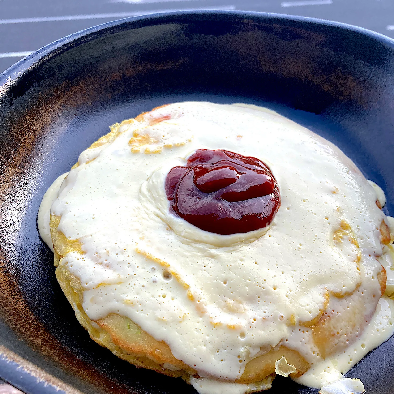 白いトコロはマヨネーズとヨーグルトを混ぜたソース、赤いトコロはケチャップとソースです。