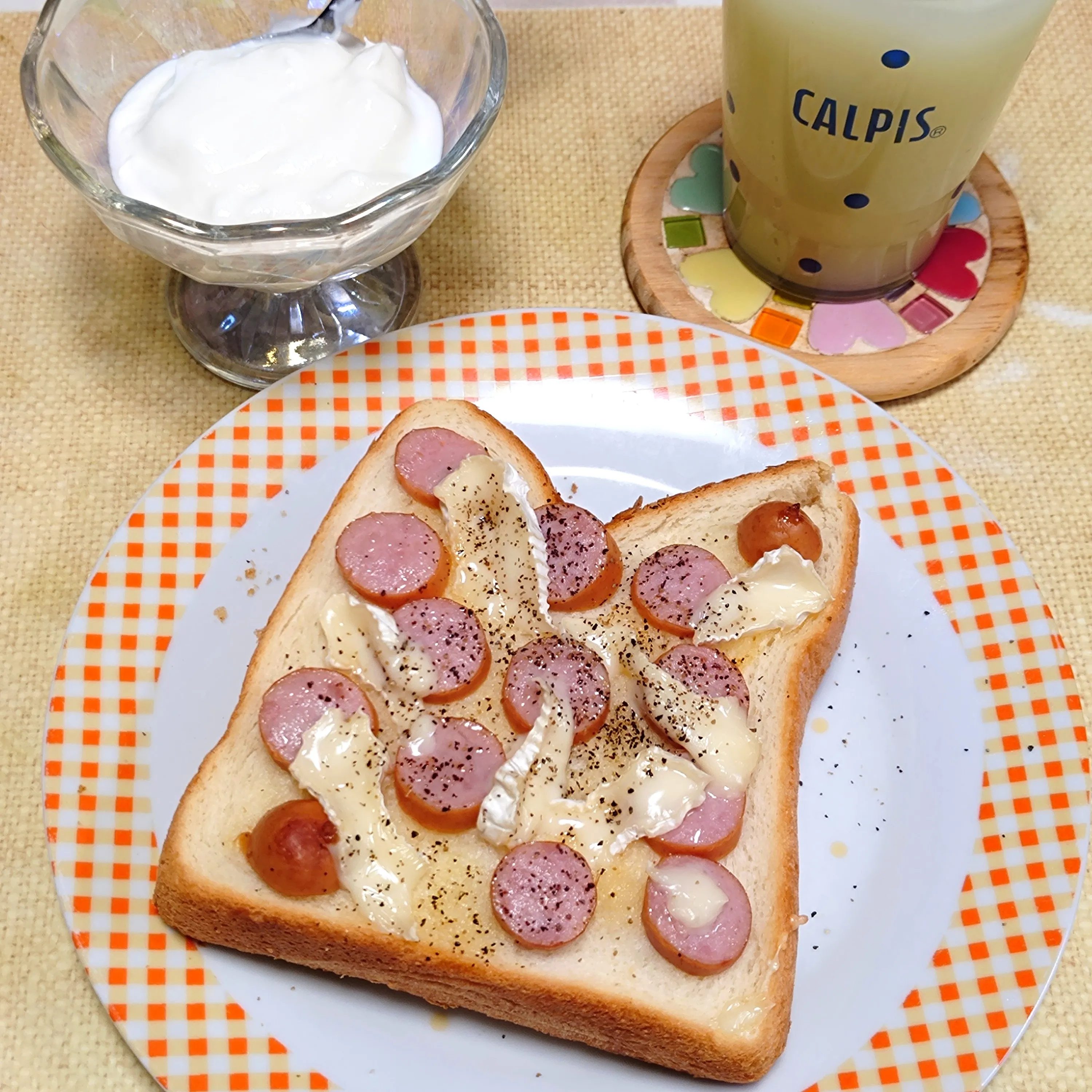 #ウィンナーとカマンベールチーズと黒胡椒のトースト