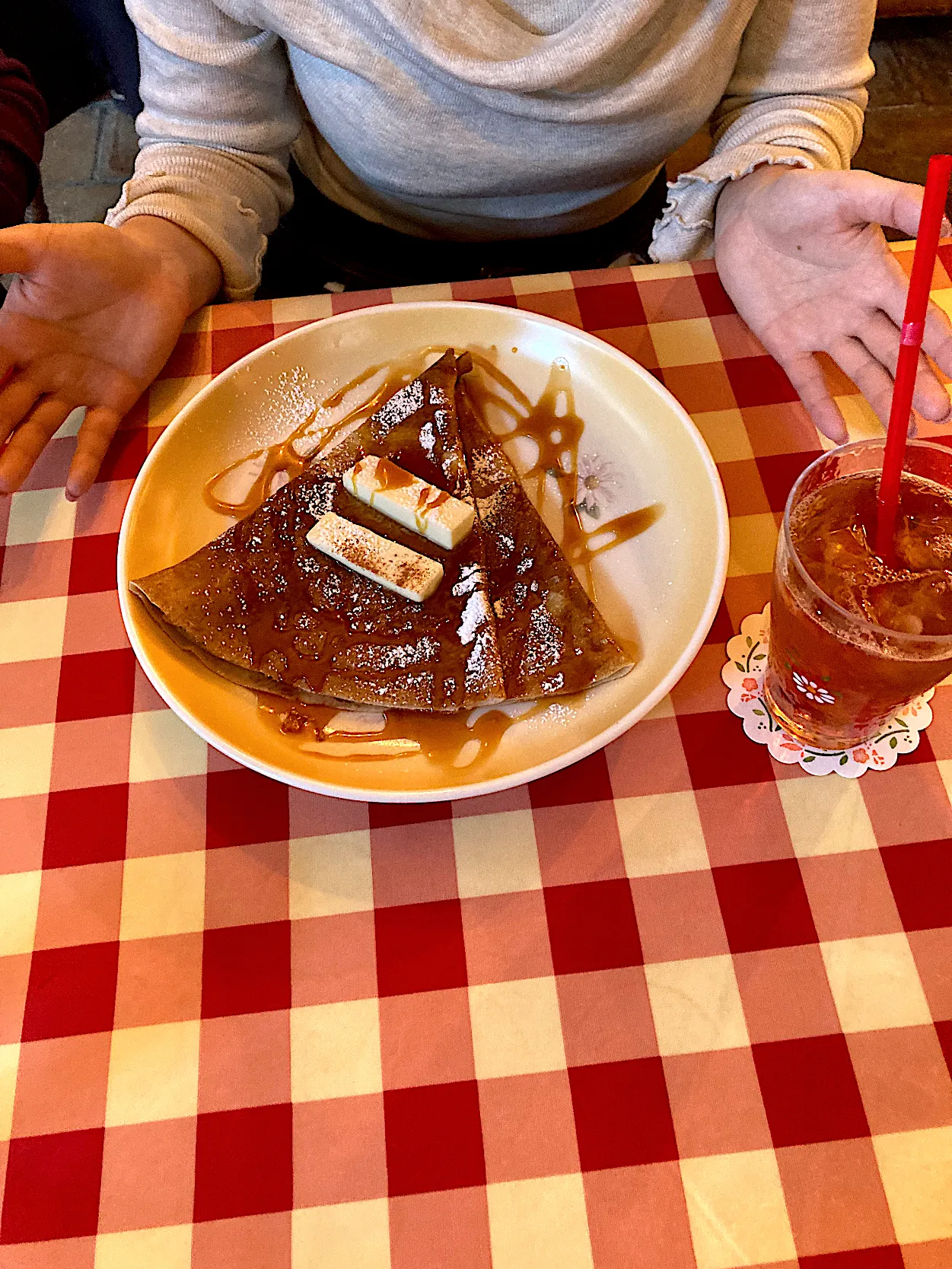 娘の塩バターキャラメルのクレープ(実況中継中)