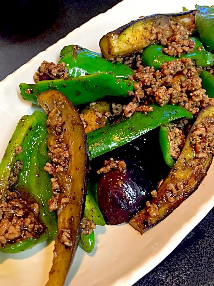茄子とピーマンの黒胡麻坦々炒め|きのみんさん