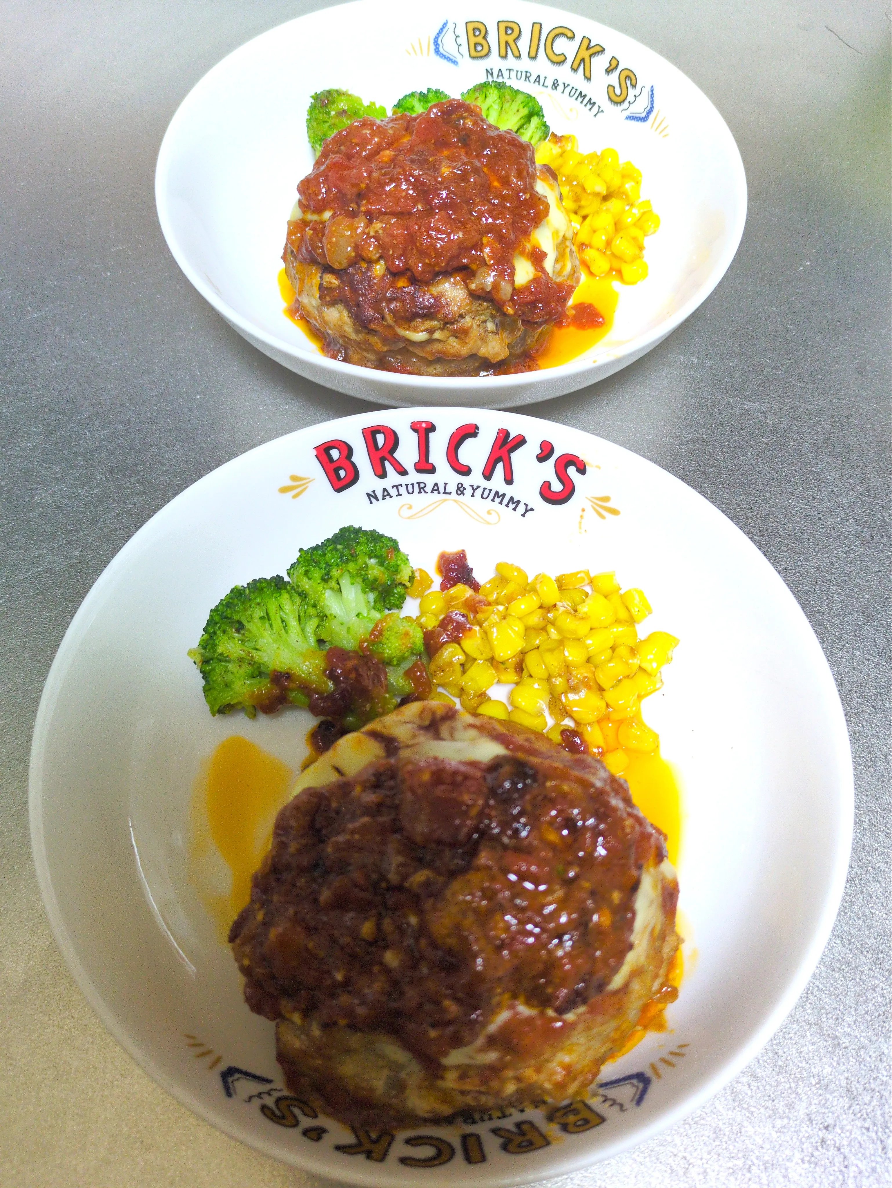 #しいたけハンバーグ#しいたけの肉詰め #母の味#しいたけ#ハンバーグ#ブロッコリー#コーン#トマトソース#パン粉の代わりにおから