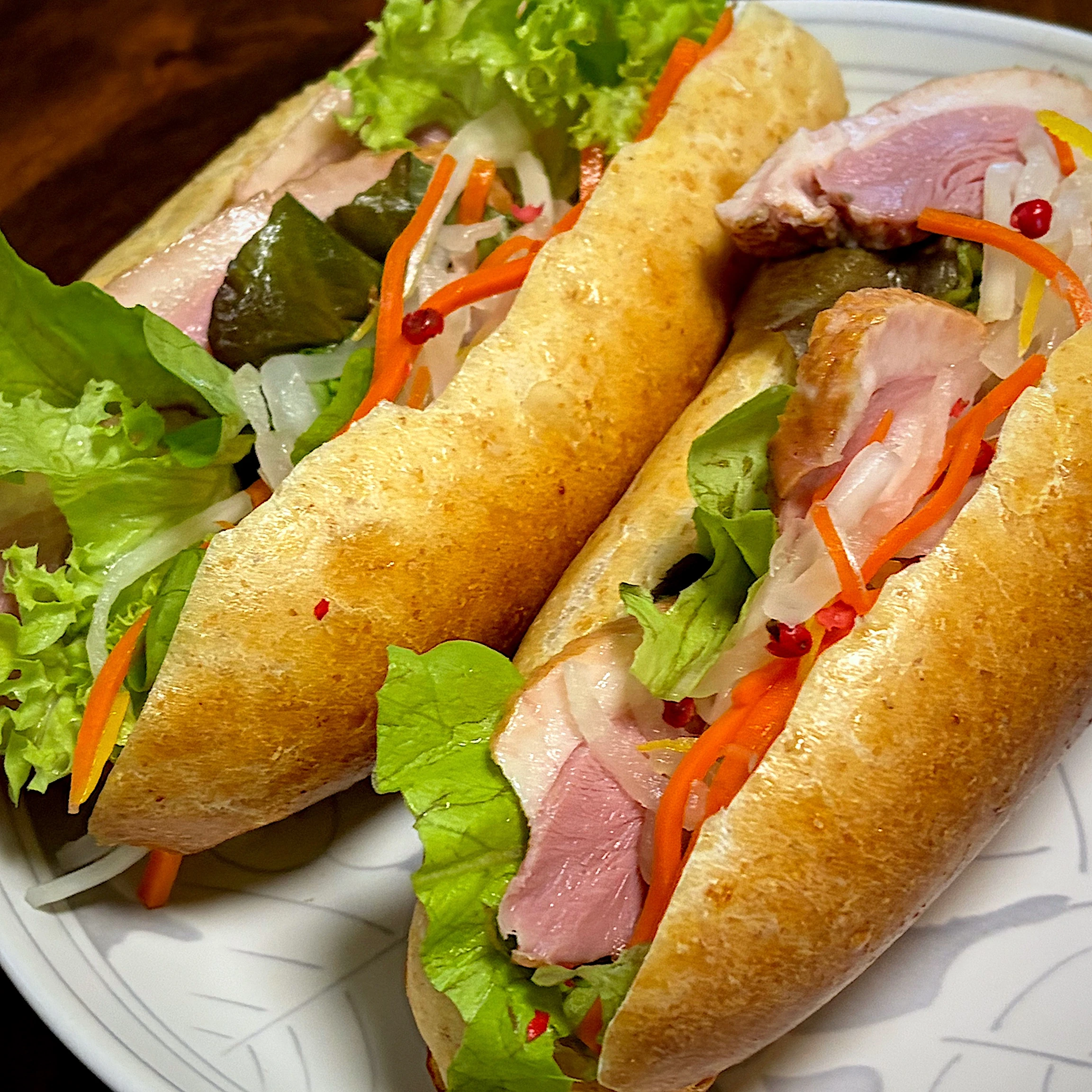 お正月にあまりがちな「なます」の消費に。意外な組み合わせなのですが、パンにたっぷり挟んで食べるとおいしいですよ。