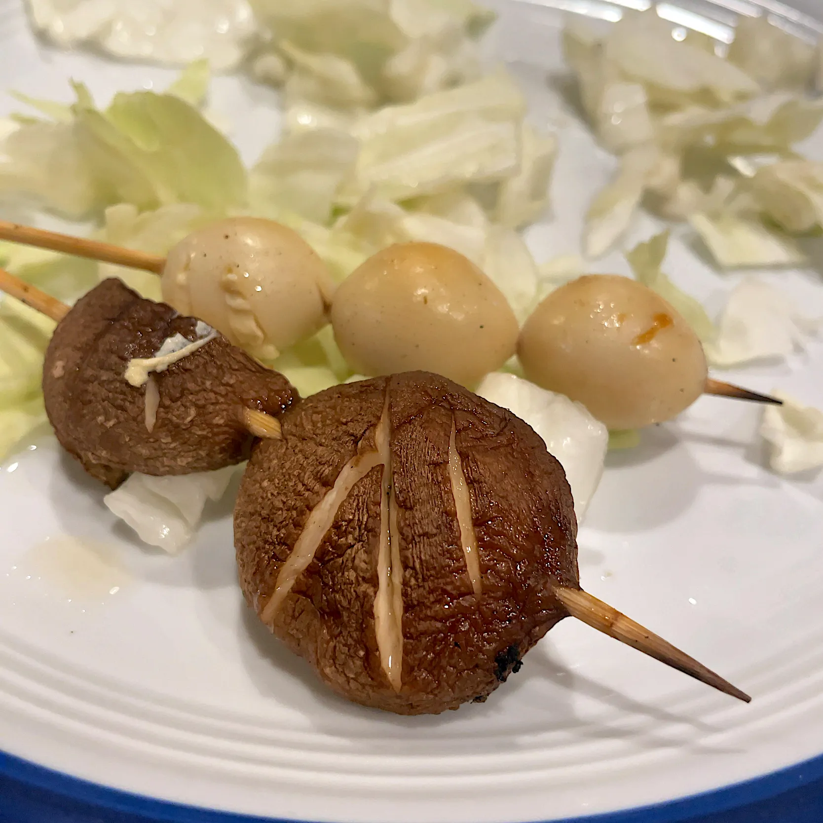 ぎんなんの代わりはしいたけです。 #おつまみ #焼き鳥