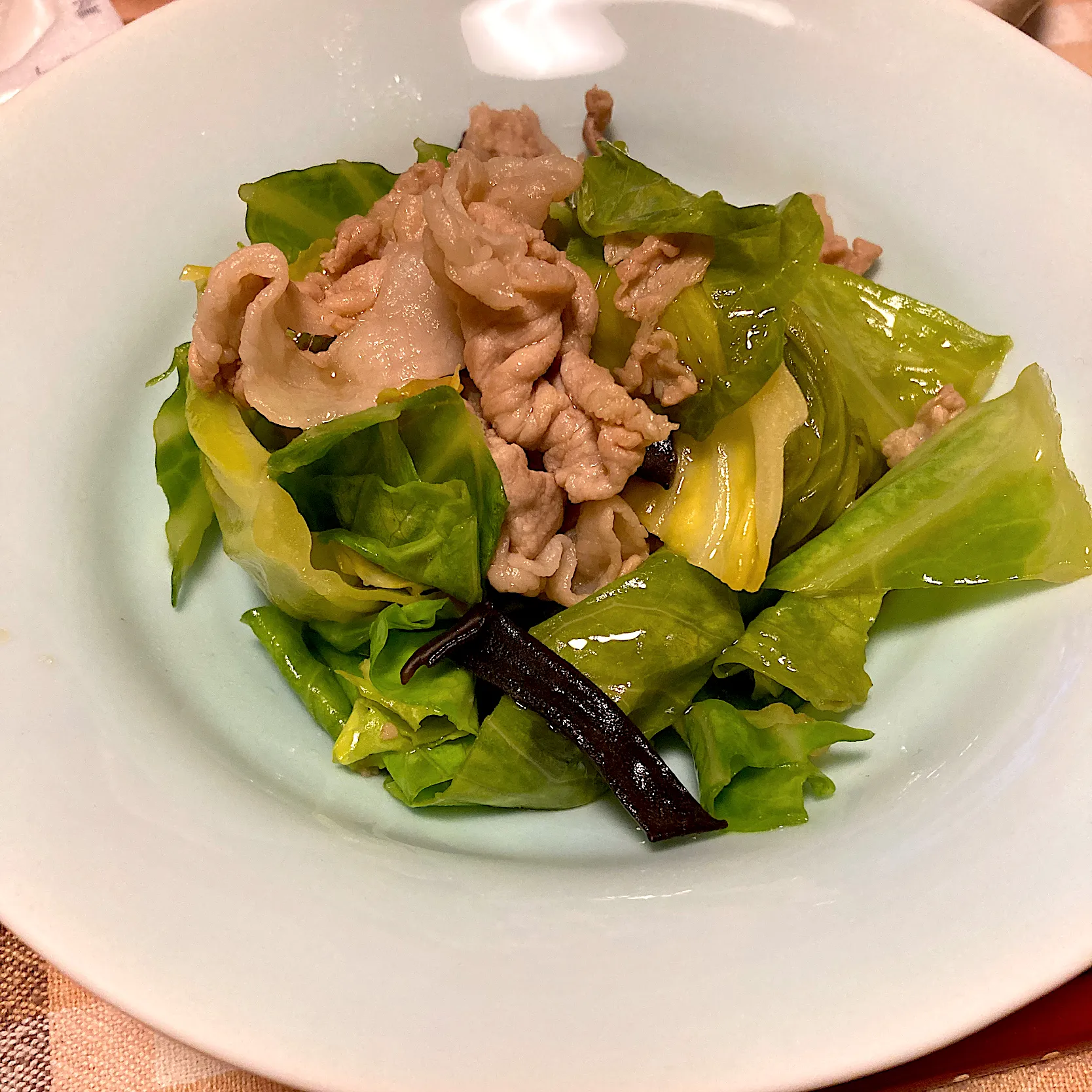 今日の晩ご飯 きしめん入り豚バラとキャベツと人参の胡...