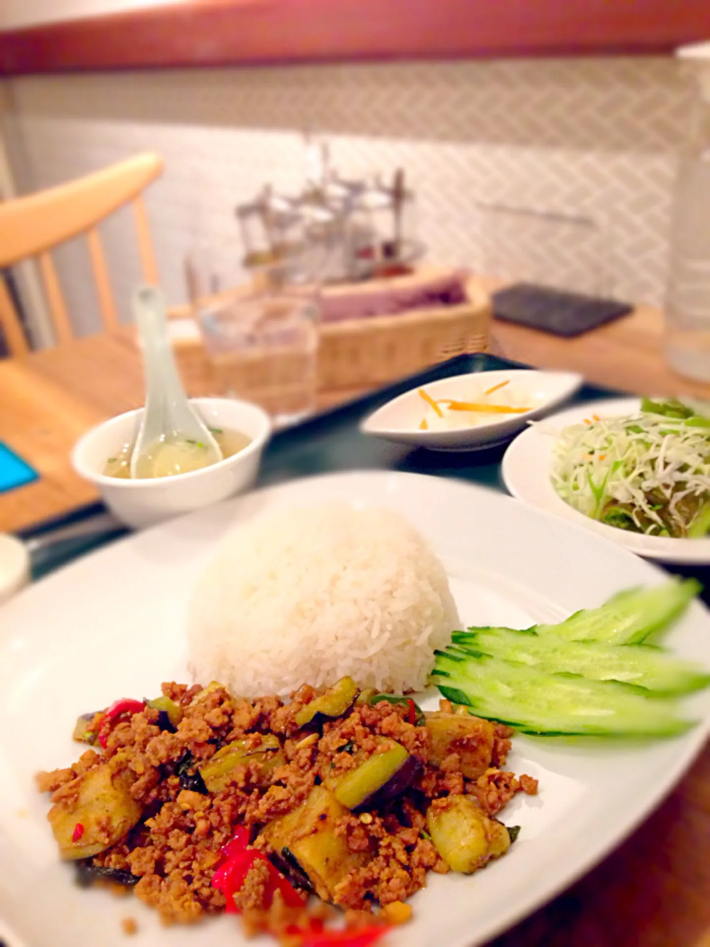 本日開店の御茶ノ水駅近くのタイ料理屋でガパオ。ピリ辛で美味い。