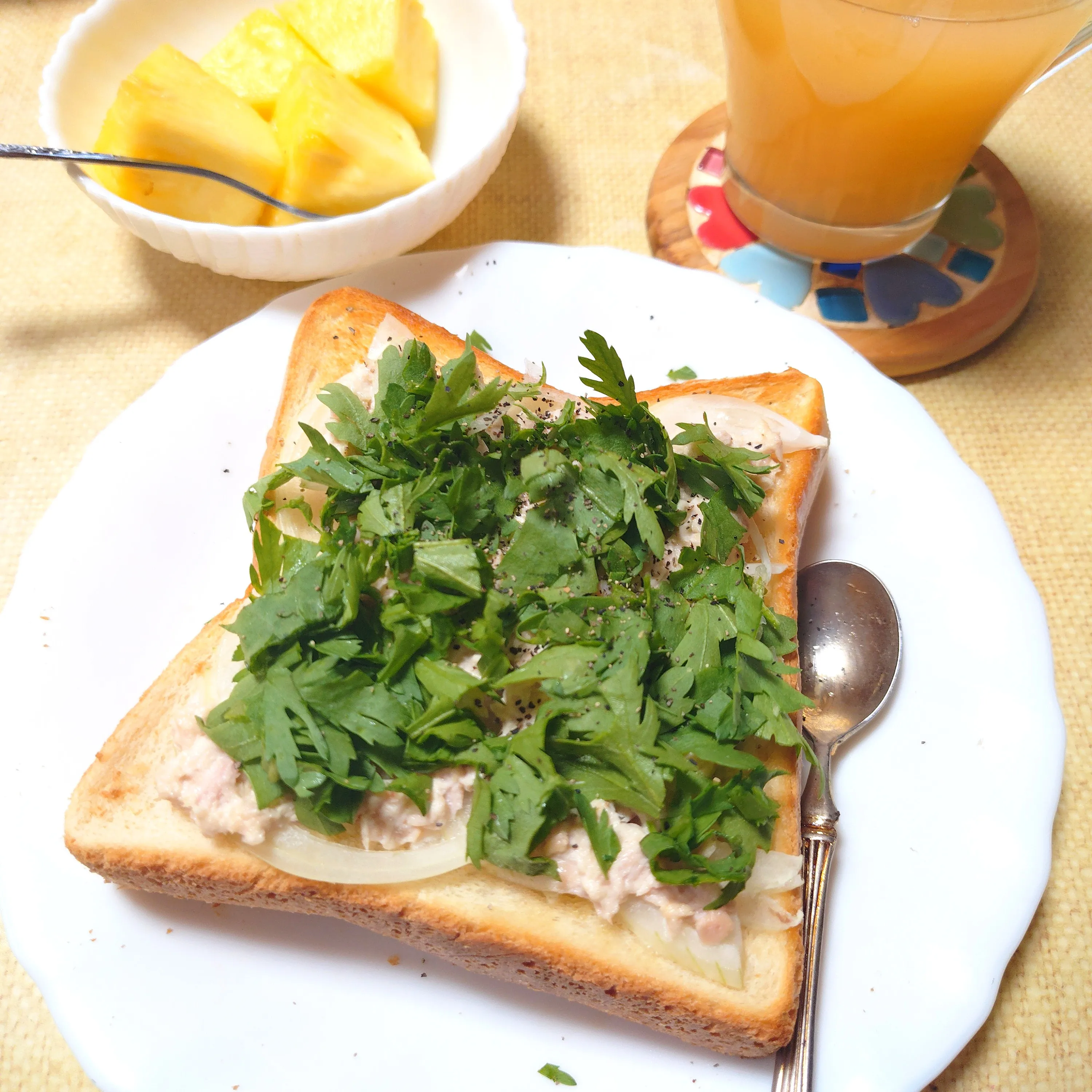 #春菊#春菊トースト#ツナトースト#春菊香る