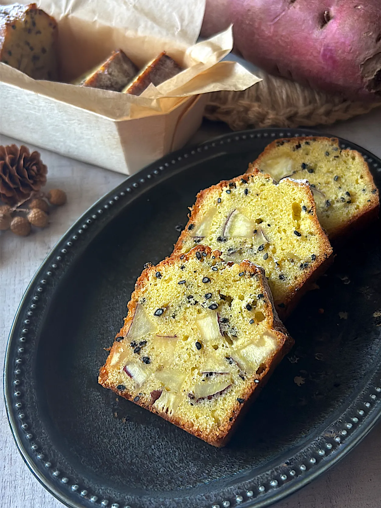 さつま芋たっぷり,胡麻がたっぷりなパウンドケーキ゚+.゚(´▽`人)゚+.゚✨