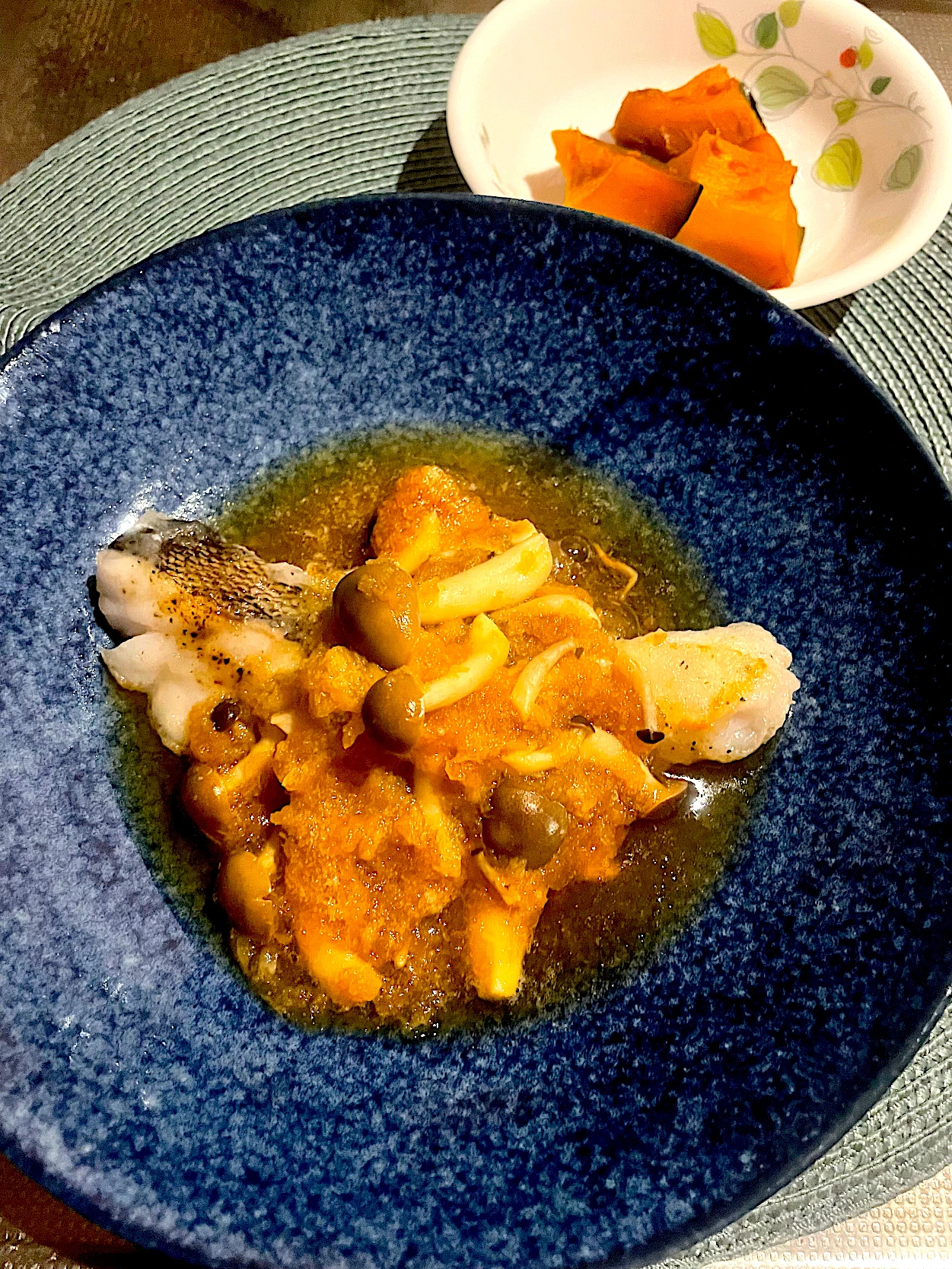 #今日の晩ごはん#鱈のしめじみぞれ餡掛け#北海道産鱈#南瓜煮#渡り蟹のお味噌汁#私のおいしい写真