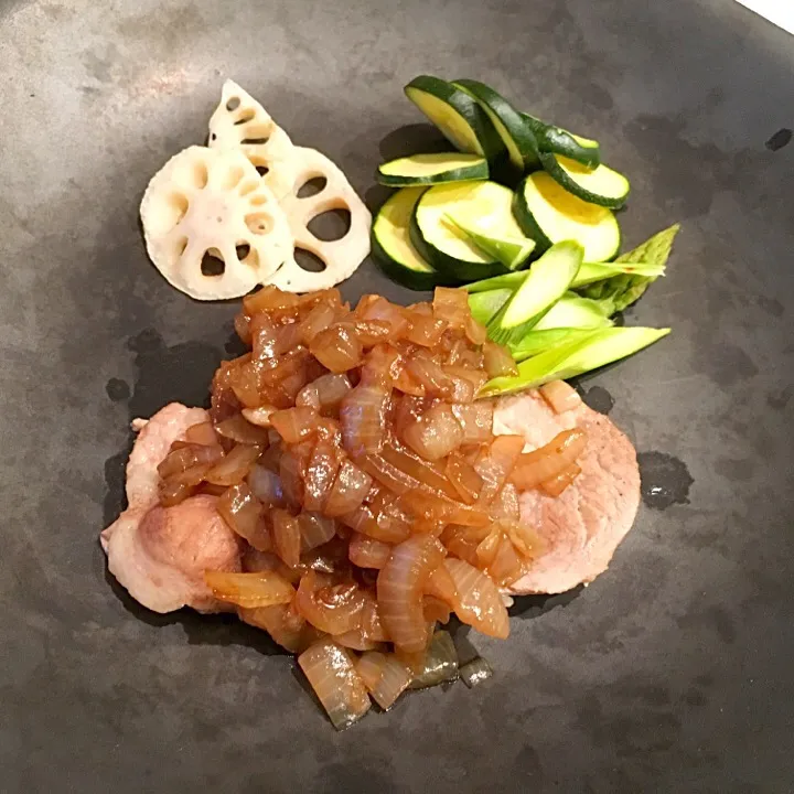 炒めた玉葱に、バルサミコ酢と醤油で味を付けました。