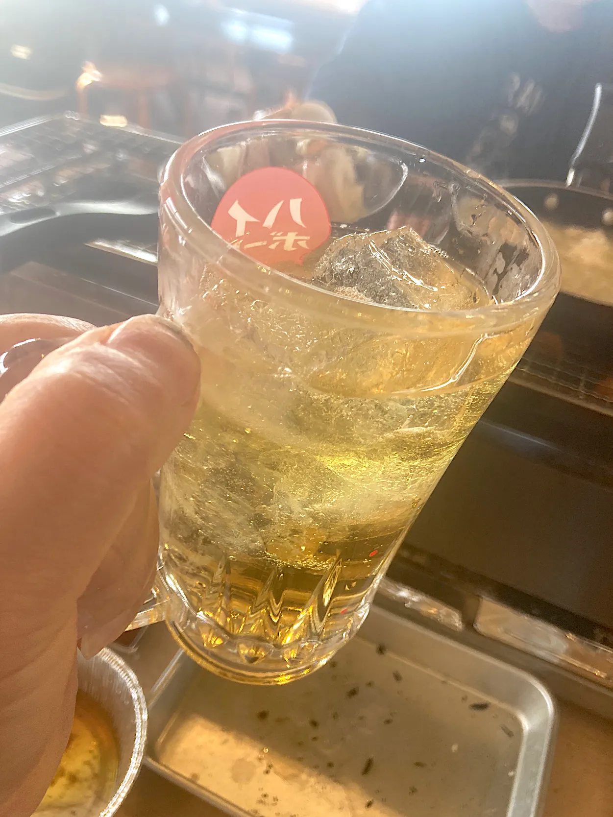 今日の昼ご飯@「海鮮浜焼きバイキング まるはま」さん⑮ 生ビール3杯、焼酎ダブルのサワーの後、ウイスキーダブルですハイボールを作っていただきます。完全に本を取りました(*^◯^*)