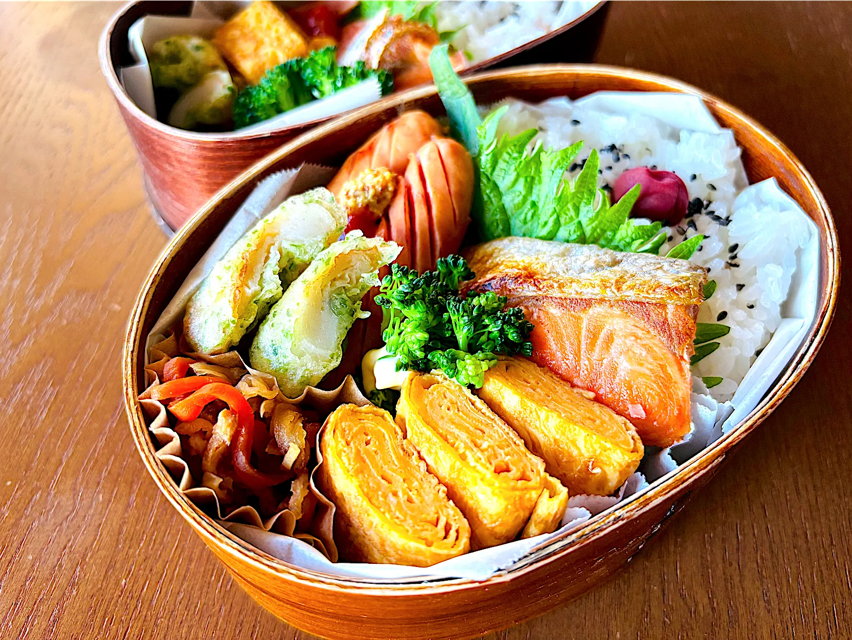 #玉子焼き #焼き鮭 #切り干し大根 #自家製梅干し #曲げわっぱ #わっぱ弁当 #曲げわっぱ弁当箱 #お弁当
