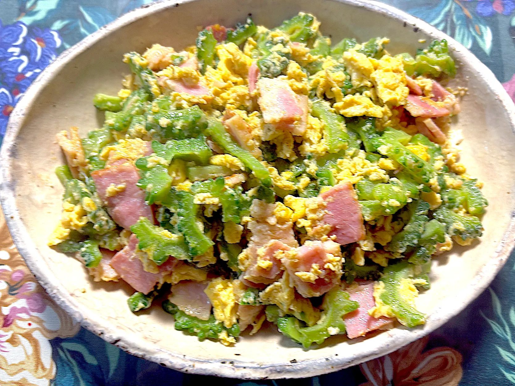 ミートスパゲッティと、ゴーヤとツナのサラダ