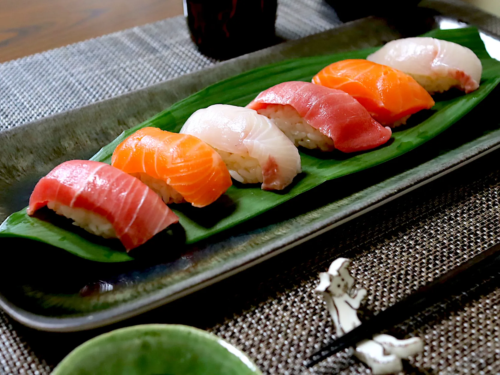 箸置きのネコちゃんがお魚狙ってる🐟♡🐈