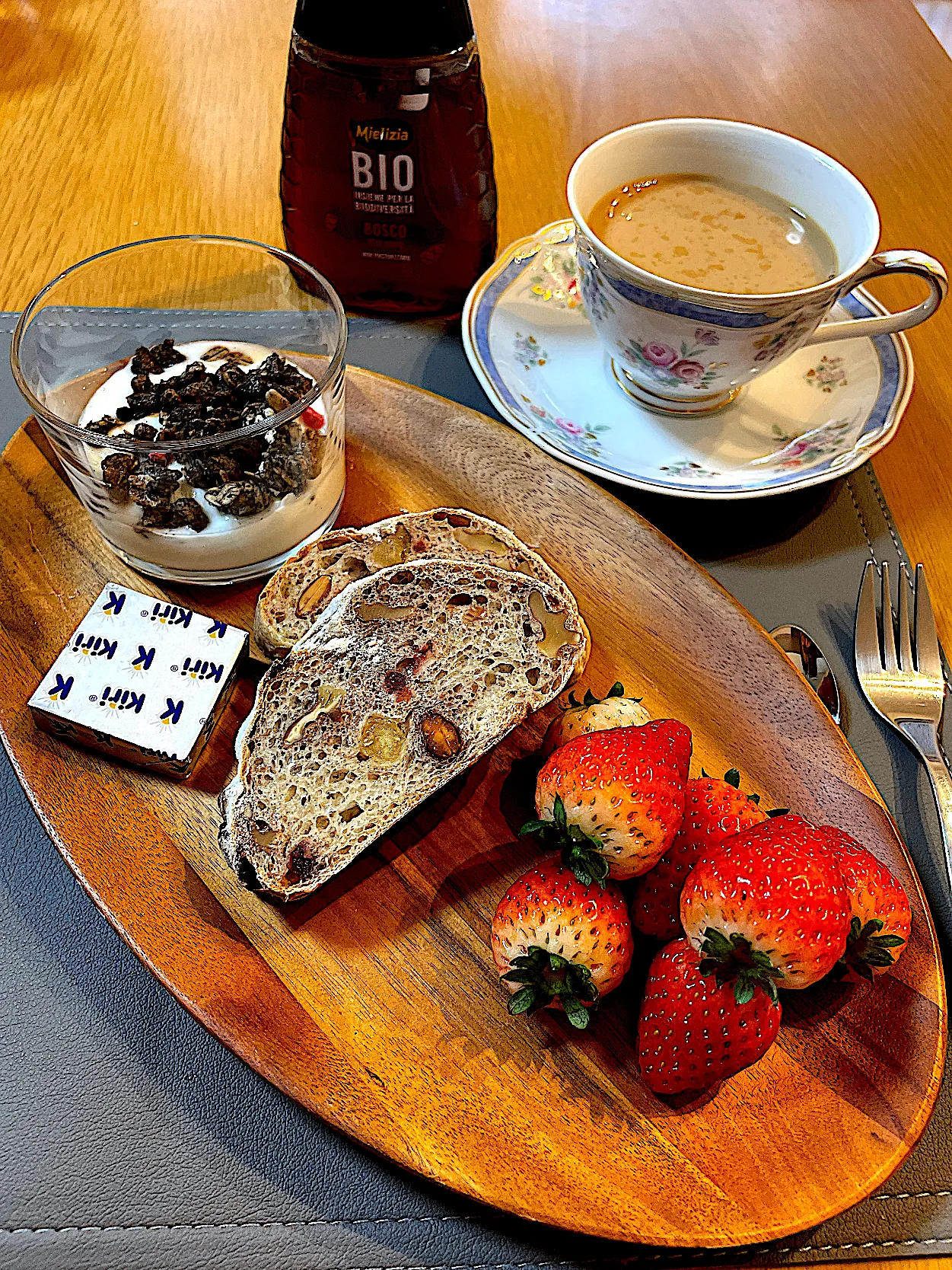 #モーニングプレート#マサラチャイ#ドライフルーツとナッツのハードパン#ライ麦パン