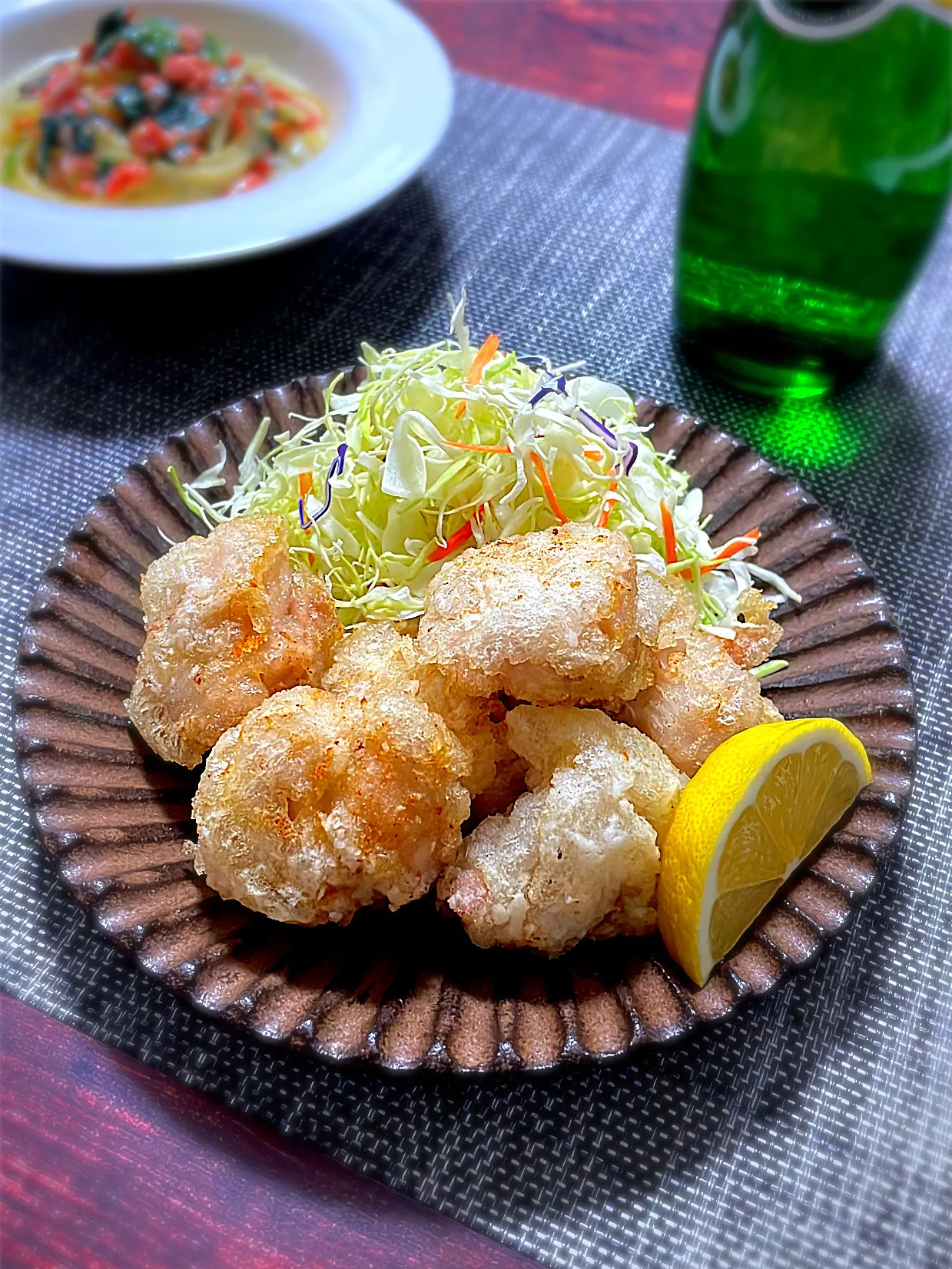 #塩からあげ #鮭とほうれん草の豆乳クリームパスタ #サラダ #からあげ #パスタ #簡単料理 #器 #うつわ