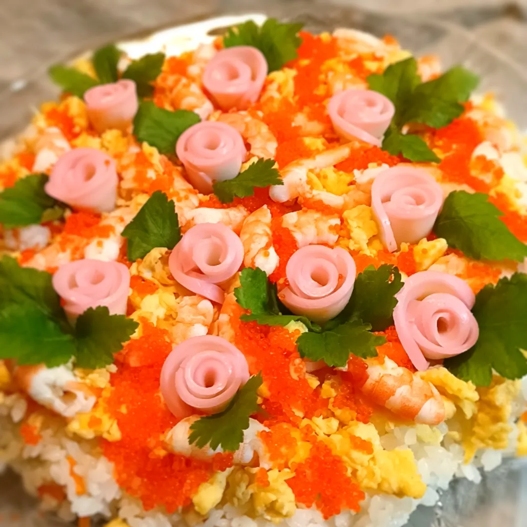 今年はどんなちらし寿司にしようかな〜と思いながら、いつもと同じ安定の薔薇のちらし寿司になりましたꉂ🤣𐤔