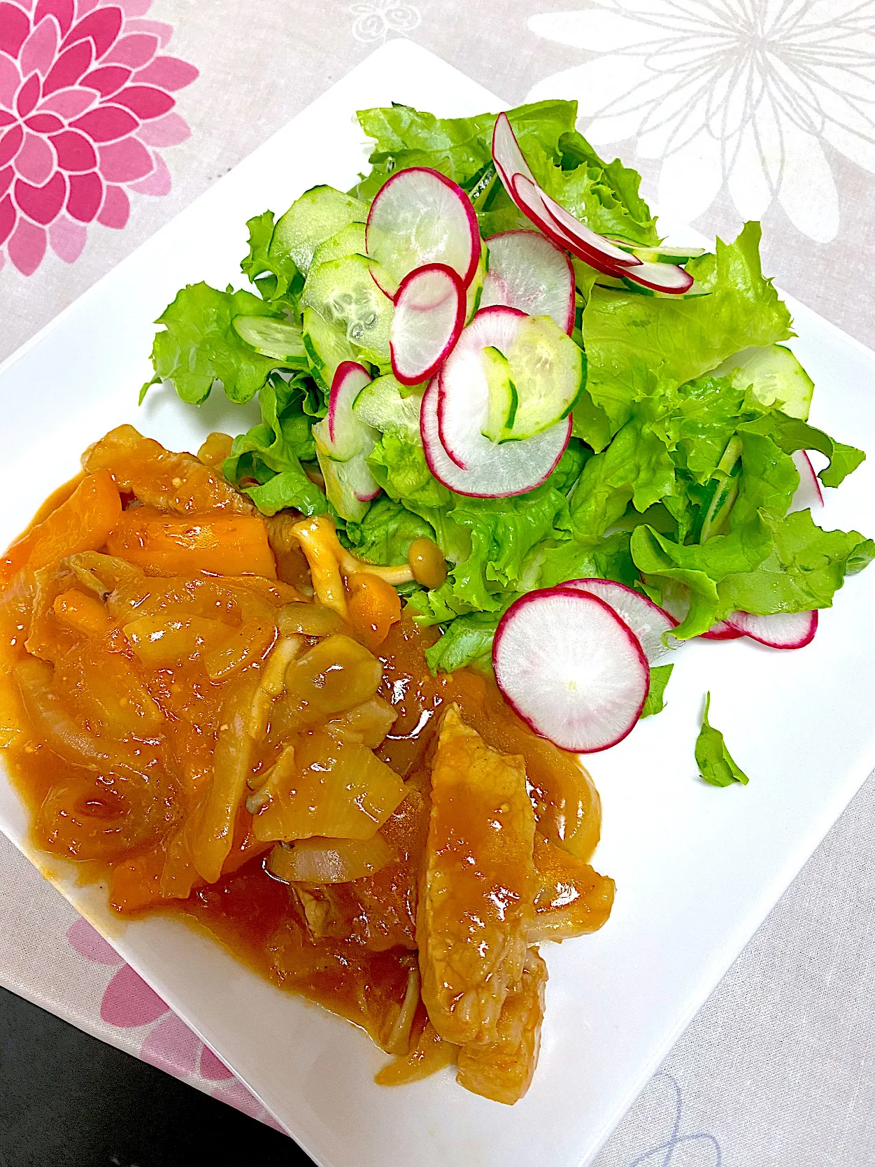 • ぶり大根、🍅🥦カマンベールのサラダ、セロリの漬物、キャベツ卵スープ|☆光るさん