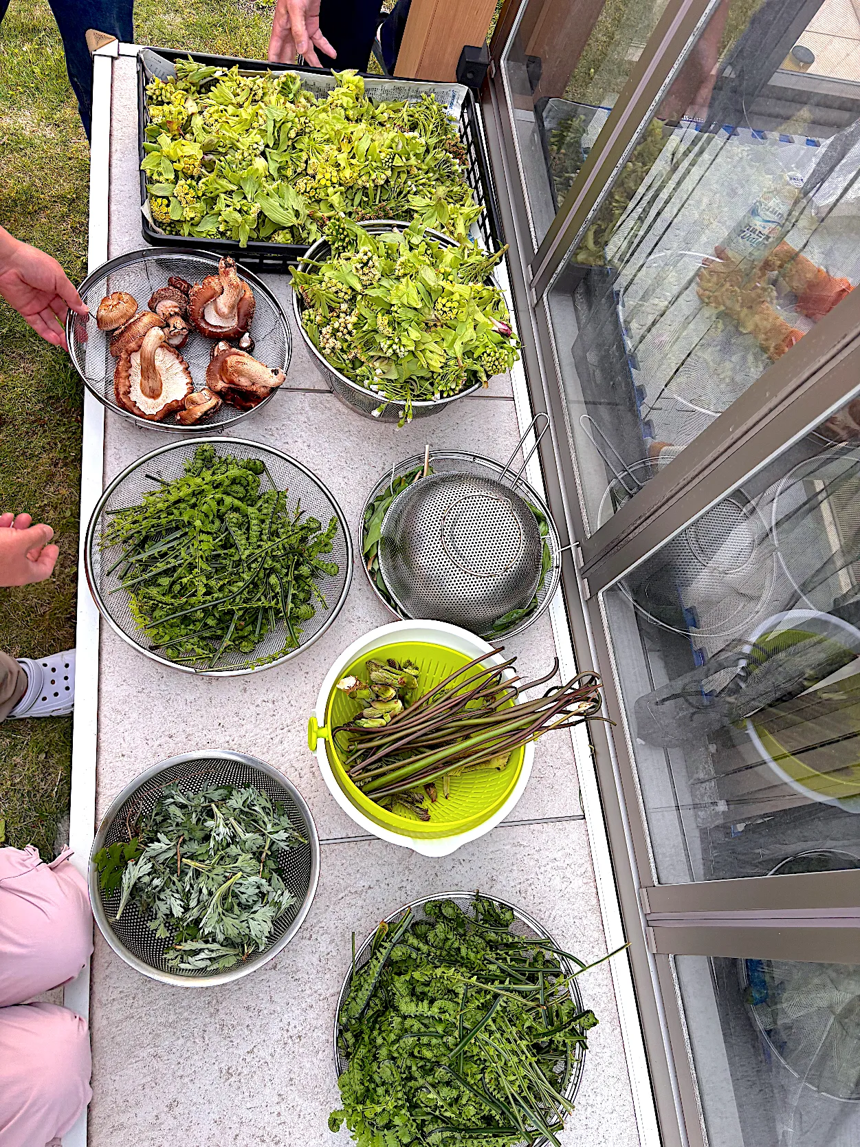 こごみ、ふきのとう、カタクリの葉、タラの芽、ゼンマイ、ワラビ、椎茸、ヨモギ