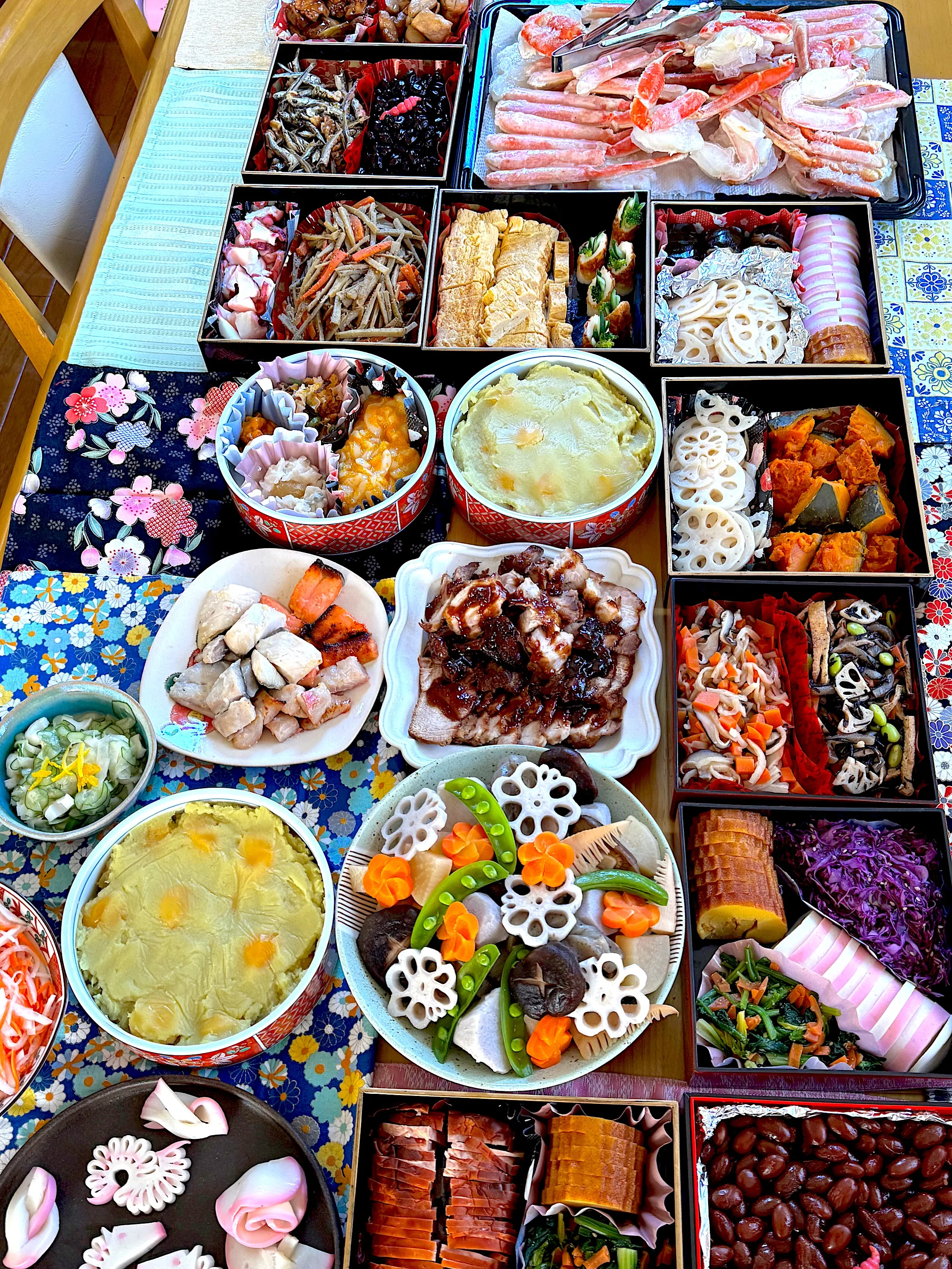おせちの方は年末からごそごと作り始めまして新鮮なうちに作ったものは冷凍保存を試みたりしながら進めて行きました😃