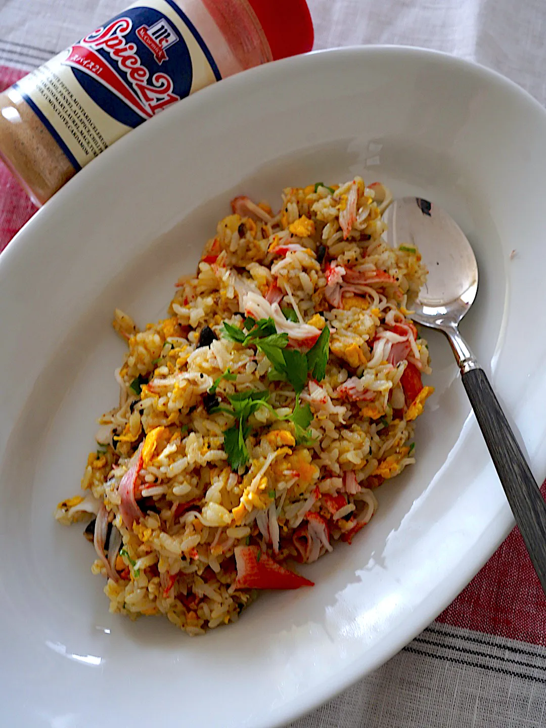 冷凍チンごはんに、賞味期限切れのカニカマ一袋