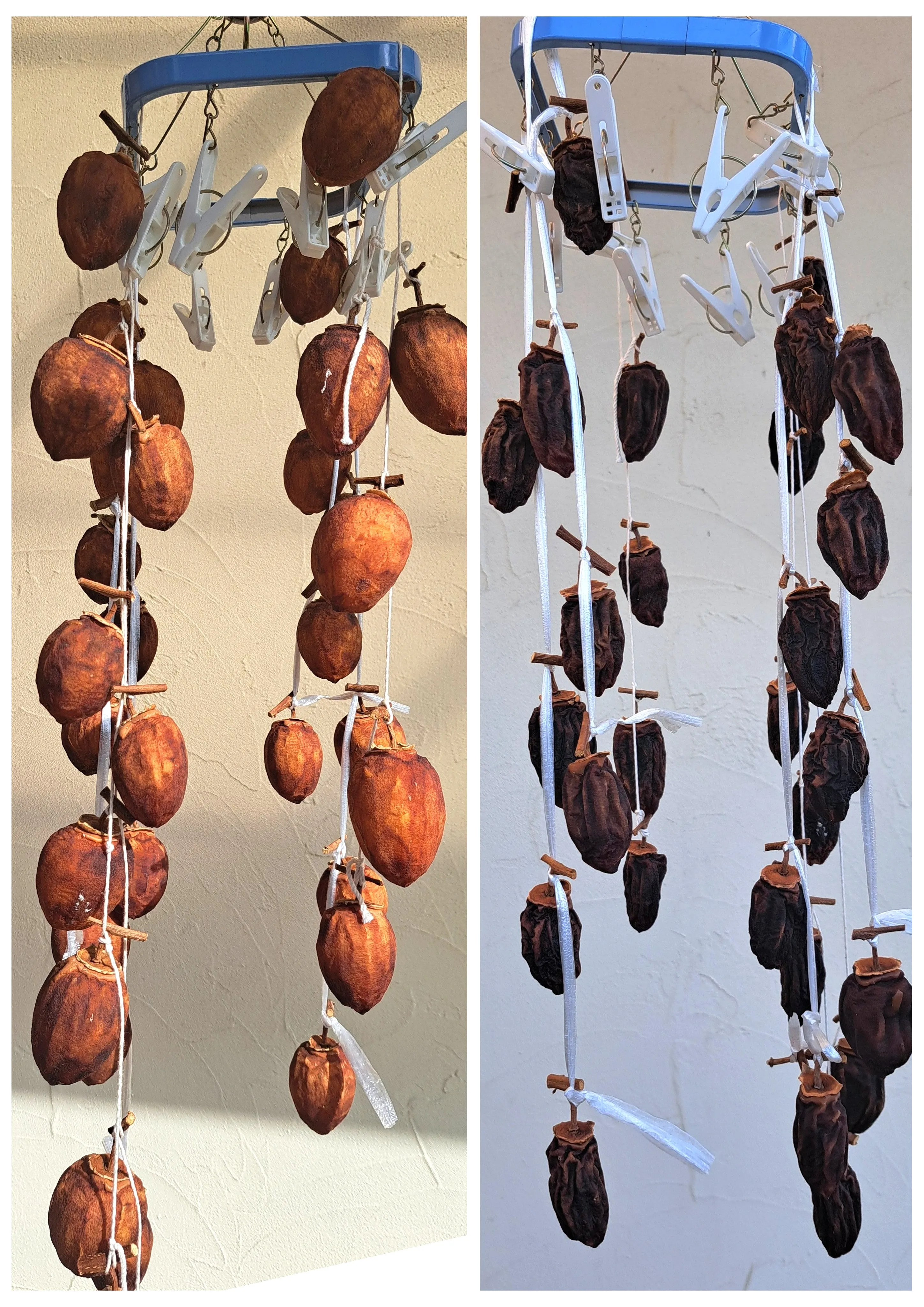 初干し柿、経過記録。カビも映えず順調です。雨降ってても、軒下なので出しっぱなしにしています。