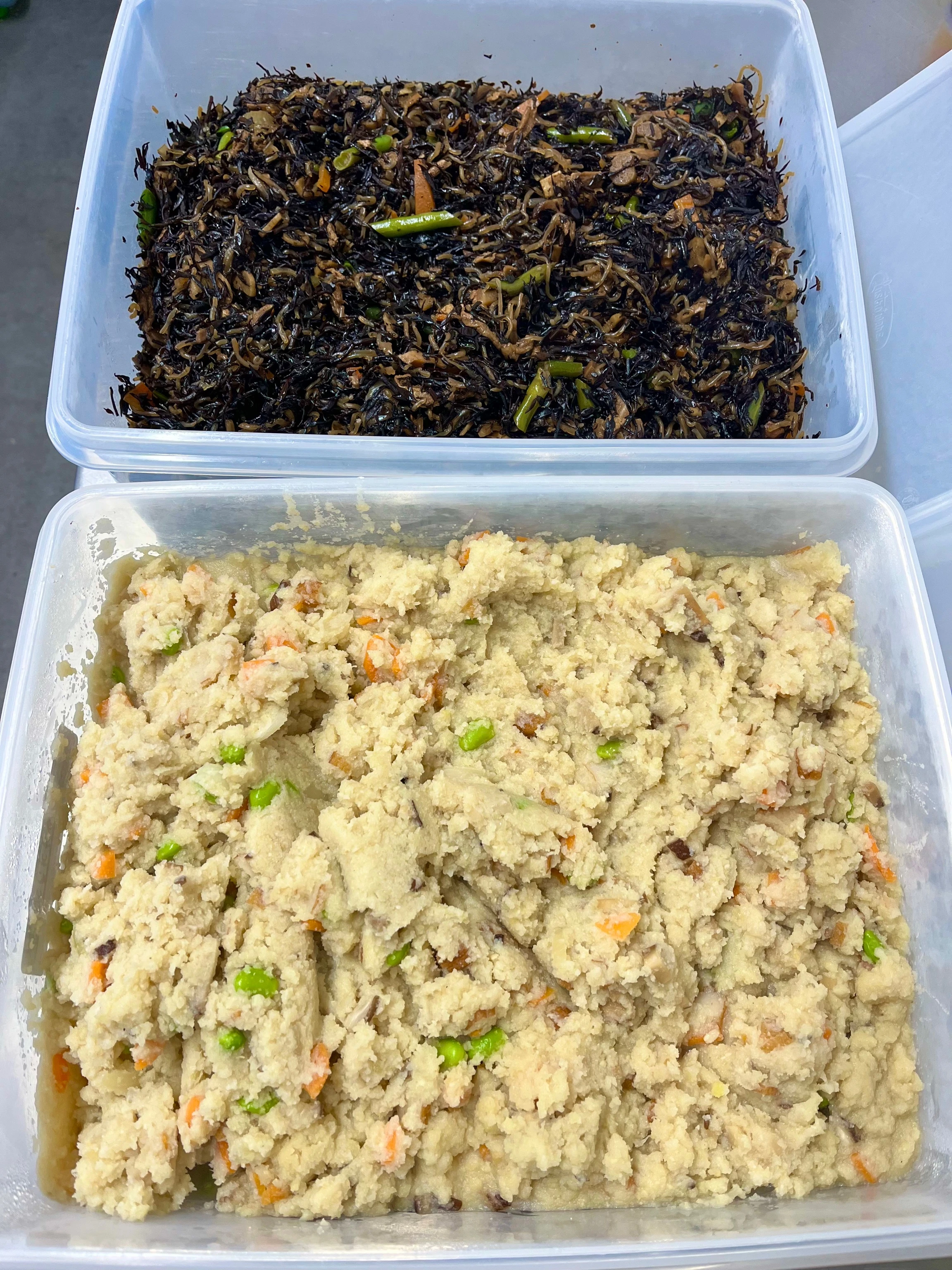 おからパウダー、しょうが、玉ねぎ、にんじん、干し椎茸、丸天、枝豆