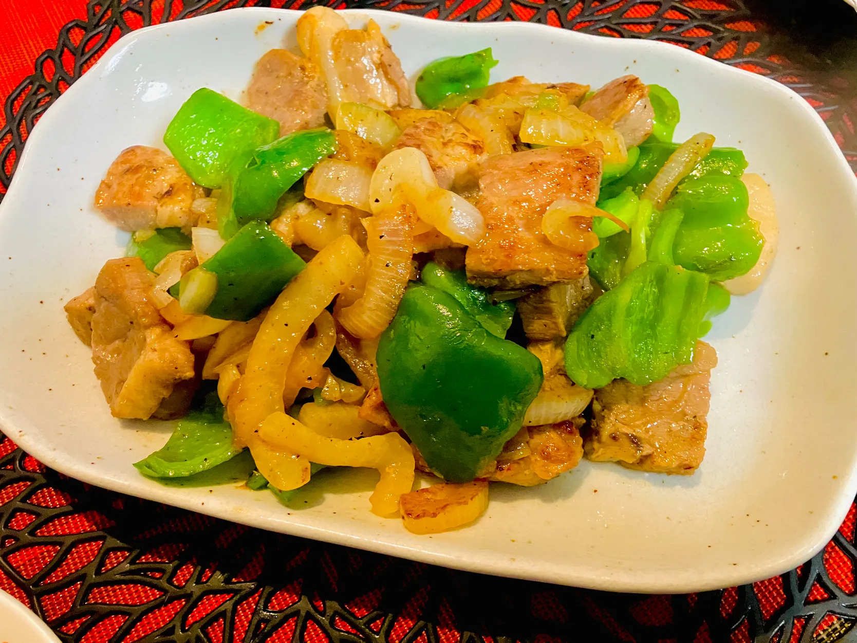 #サラダ玉ねぎ #ピーマン #豚ロース肉 #マヨネーズ #醤油 #にんにく