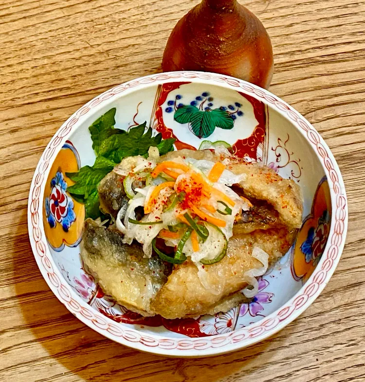 「カンタン酢de鯵なんばん晩酌」 何にでも使えるね カンタン酢 ピクルス、ポテサラ、冷奴 キンキン剣菱を添えて晩ごはん