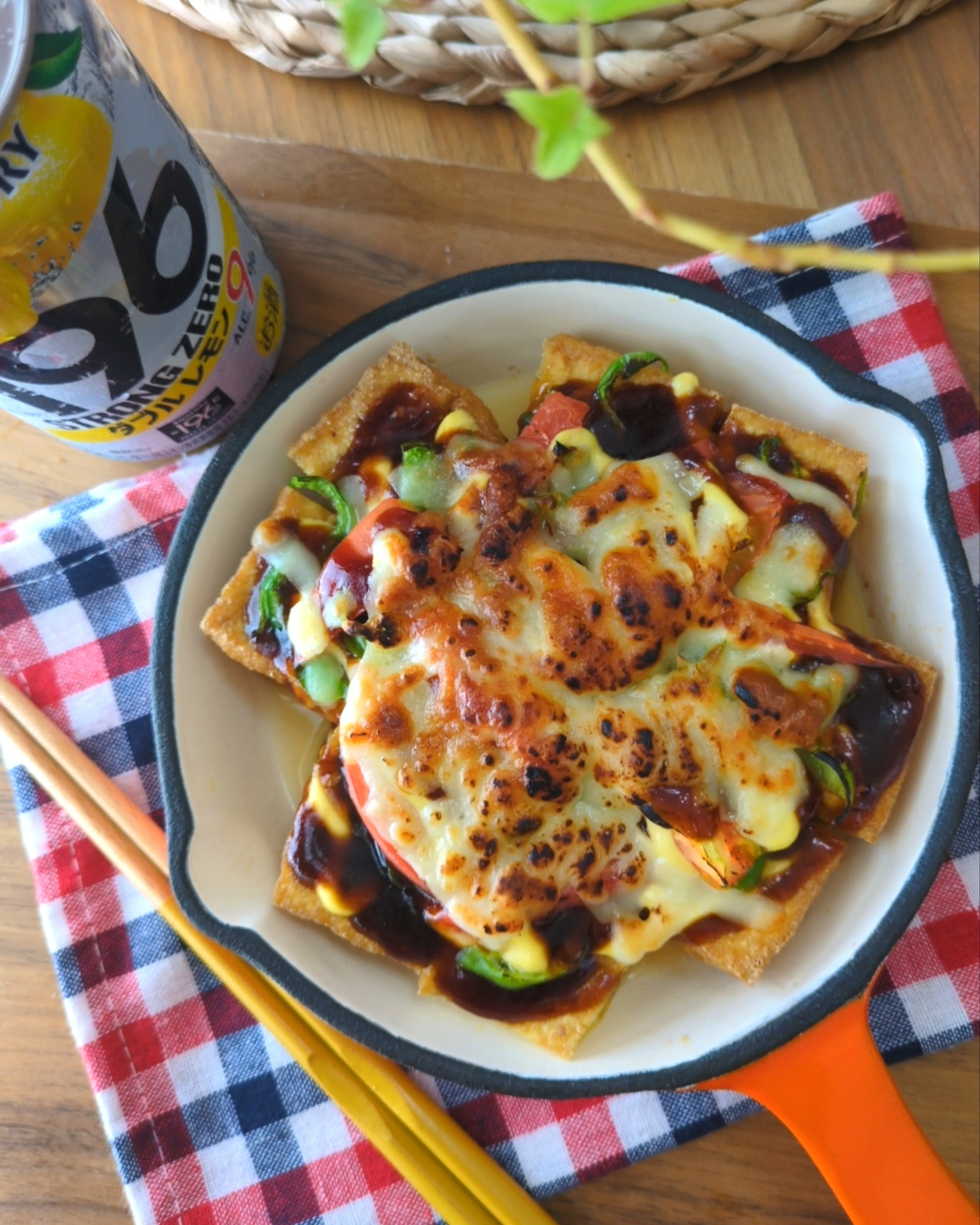 大好きな厚揚げのお好み焼き風ピザ風🤭めっちゃ美味しそう💕