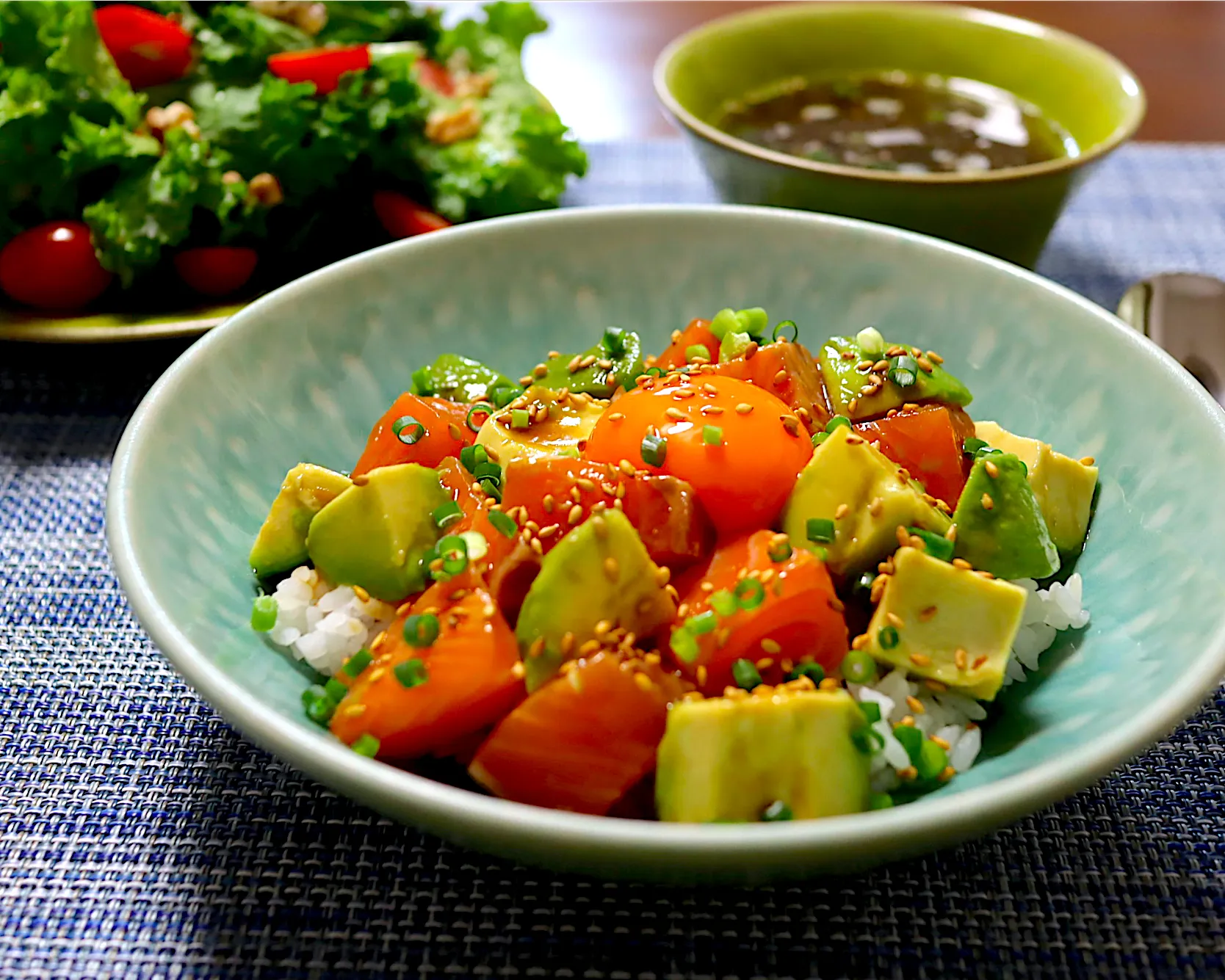 #ダイエット #サーモン #ポキ丼 #坂元のくろず #勝連のもずくスープ #パルミジャーノレッジャーノ