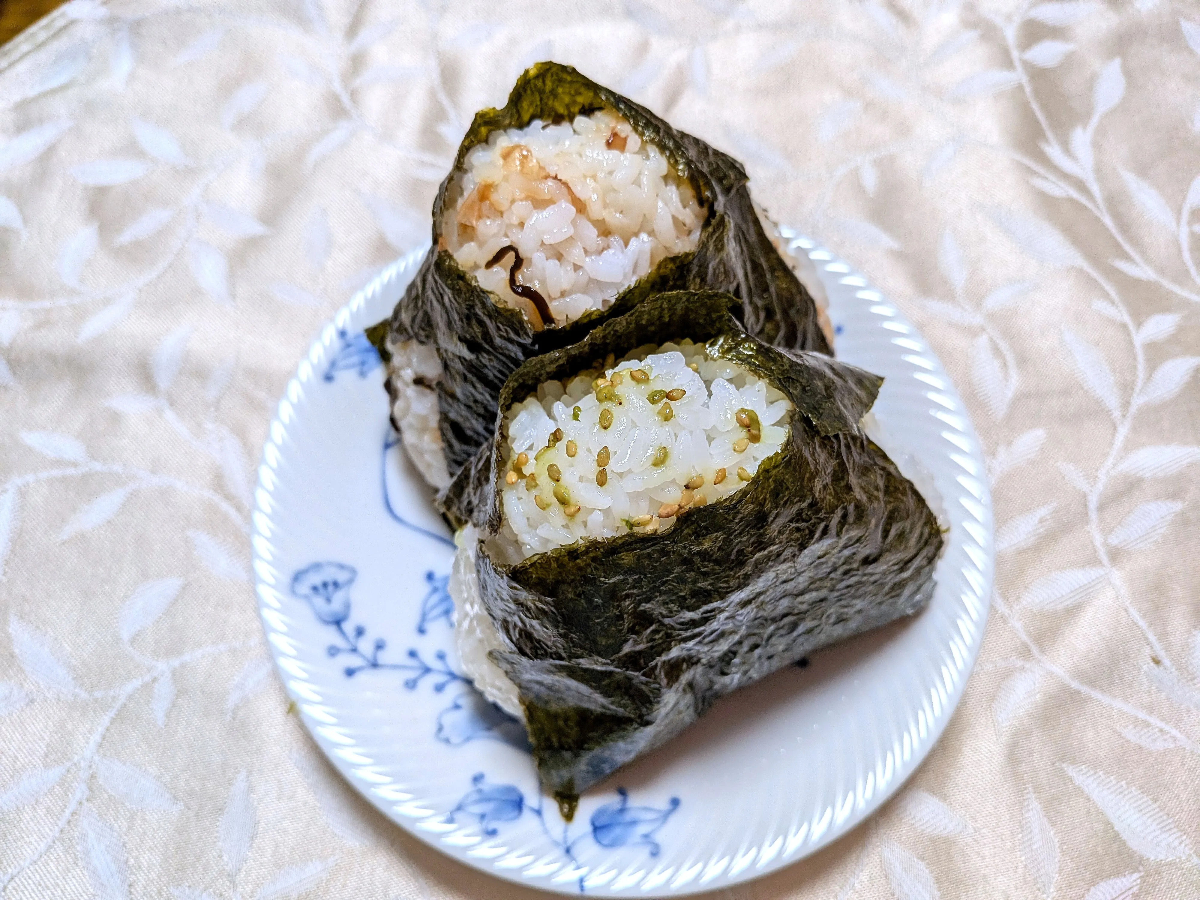 #梅塩昆布と本枯れ節の混ぜこみおにぎり