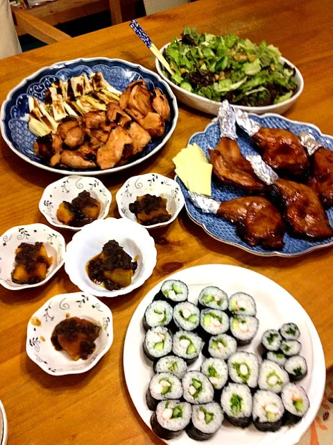 昨日、冬至南瓜食べ忘れて、早目のクリスマスとサラダ巻😊