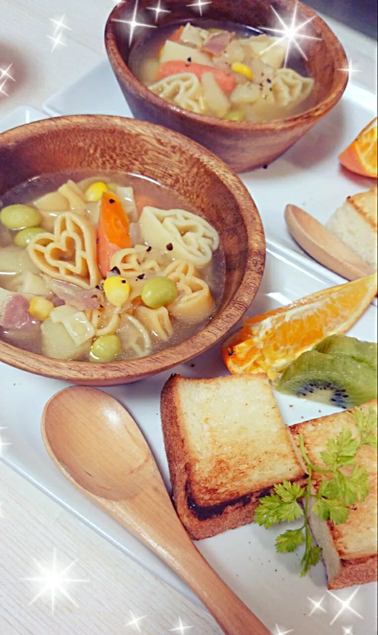 残り野菜とはいえ、温かお野菜たっぷりのスープで体の中からあったか♪あったか(ノ´∀`*)