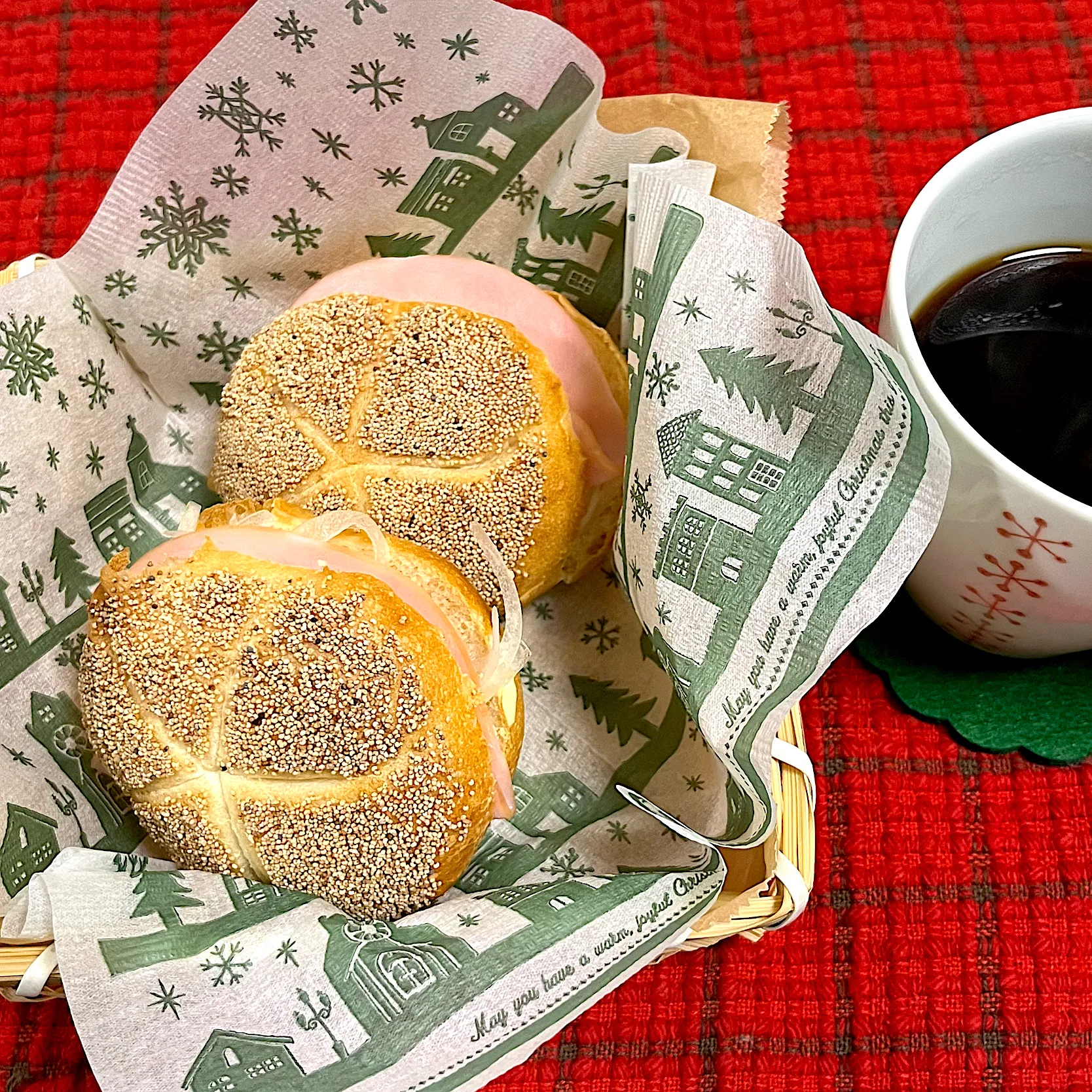 昨日焼いたカイザーで今朝はタマネギ&ハムでおうちカルネ🥯