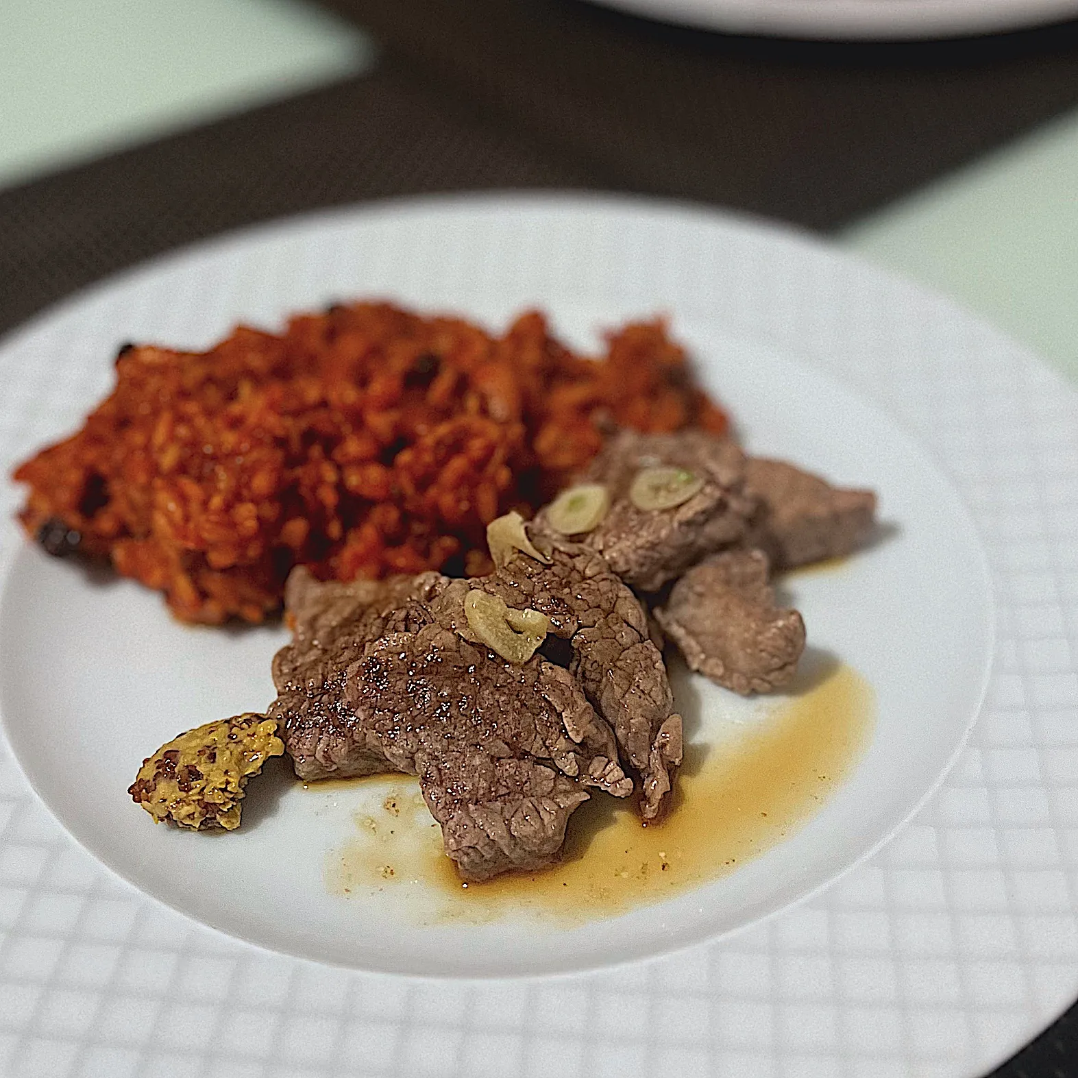 牛肉のガーリックソテーと辛ピラフ(Acılı pilav)