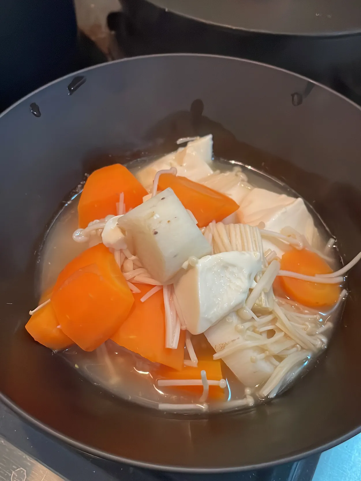 にんじん、里芋、えのき、豆腐 with 鍋キューブ 鶏だし・うま塩