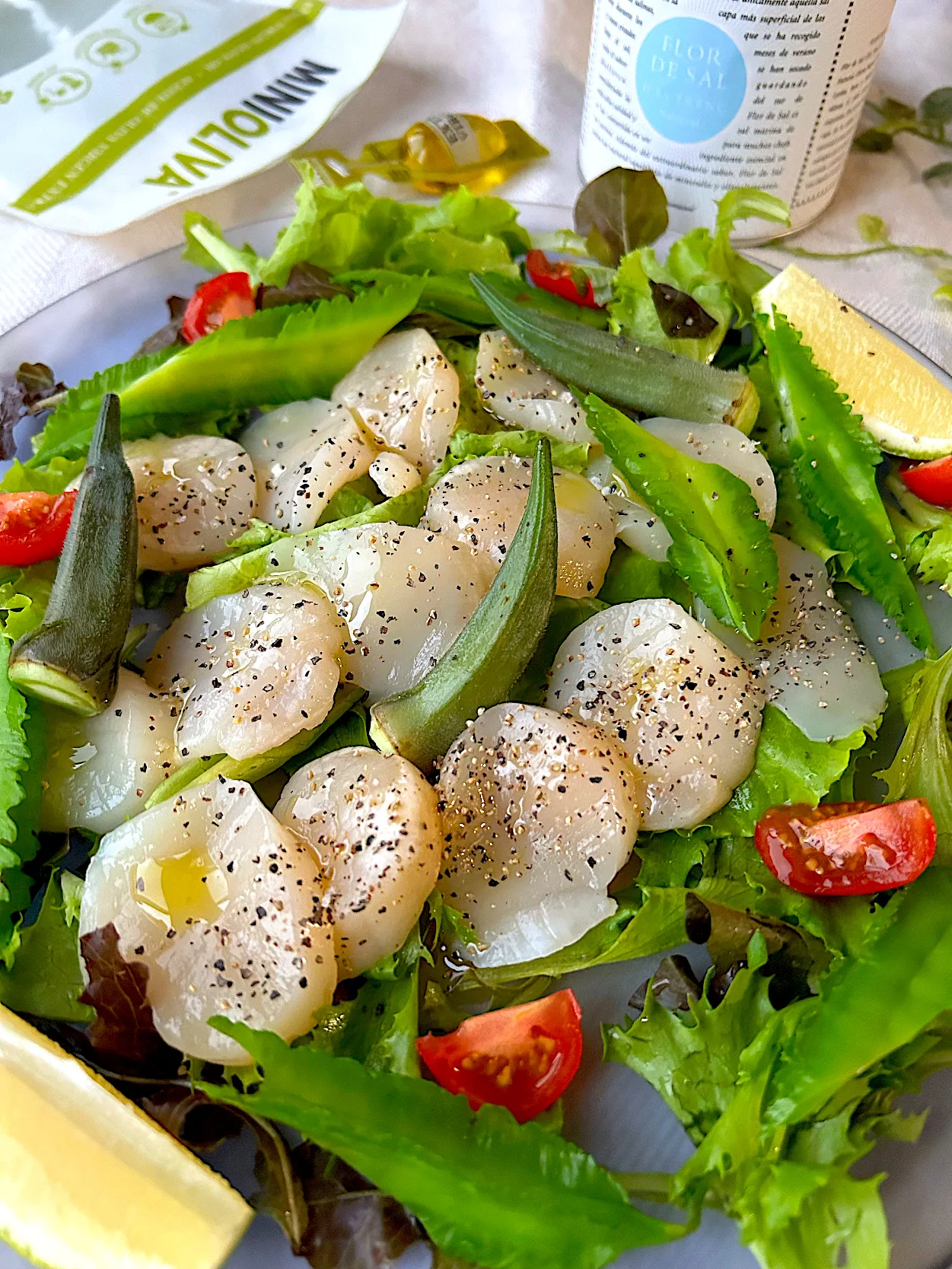 ホタテも入れて、大きなシカクマメもオクラも丸ごと入れてみたらボリュームあるよね!