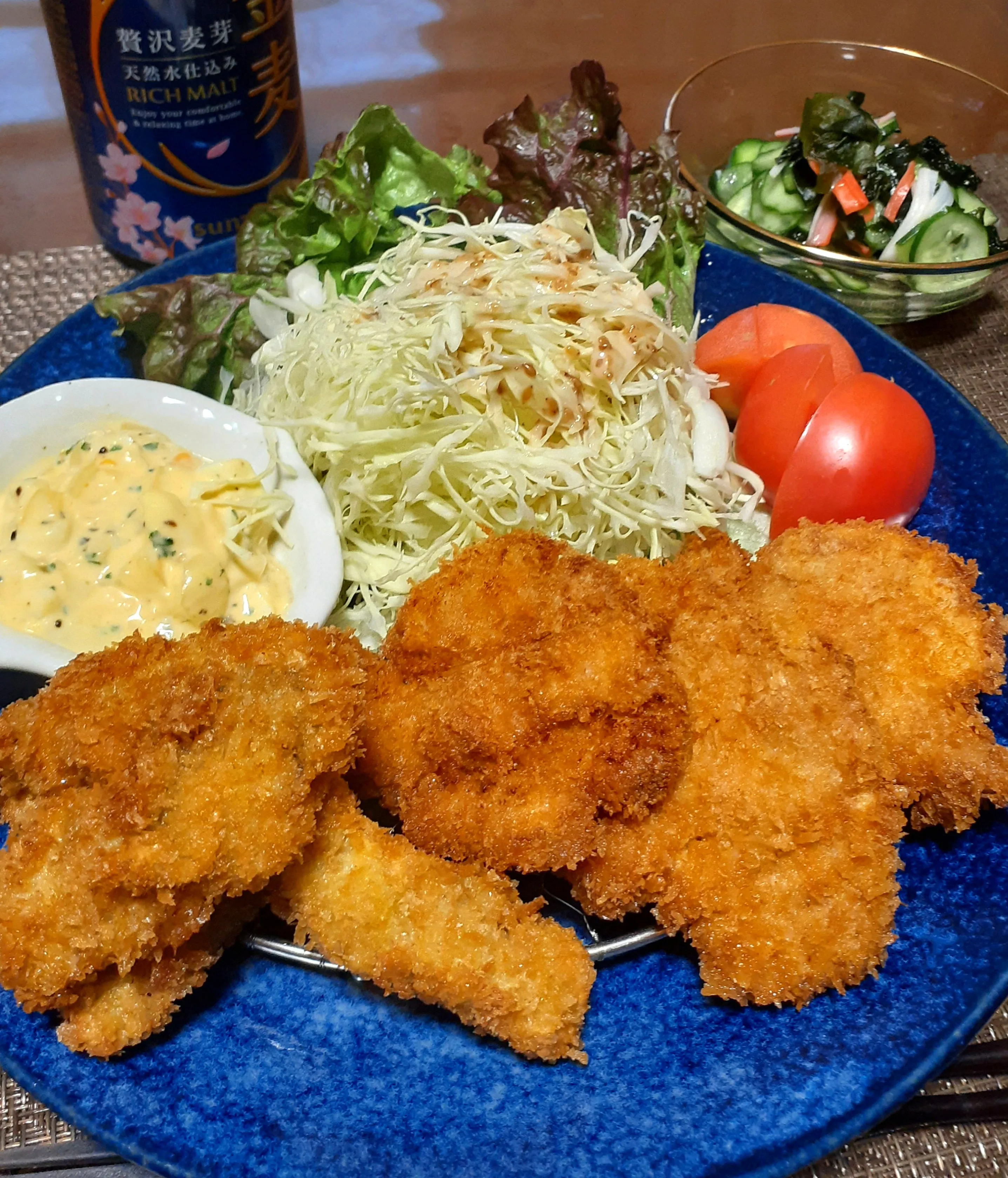 旦那リクエストの豚カツ🐽私が食べたかったカキフライ🦪