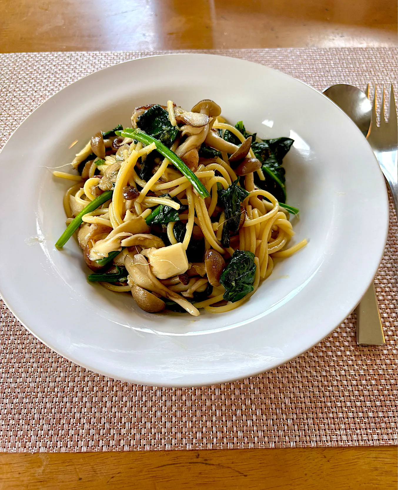#実家ごはん #2人ごはん #パスタ #ほうれん草 #3種のきのこ