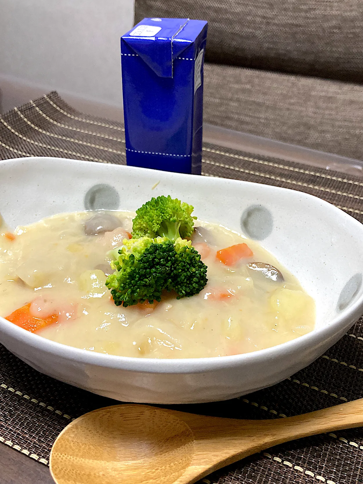 牛乳仕立てと変わりなく美味しいシチューになりました。
