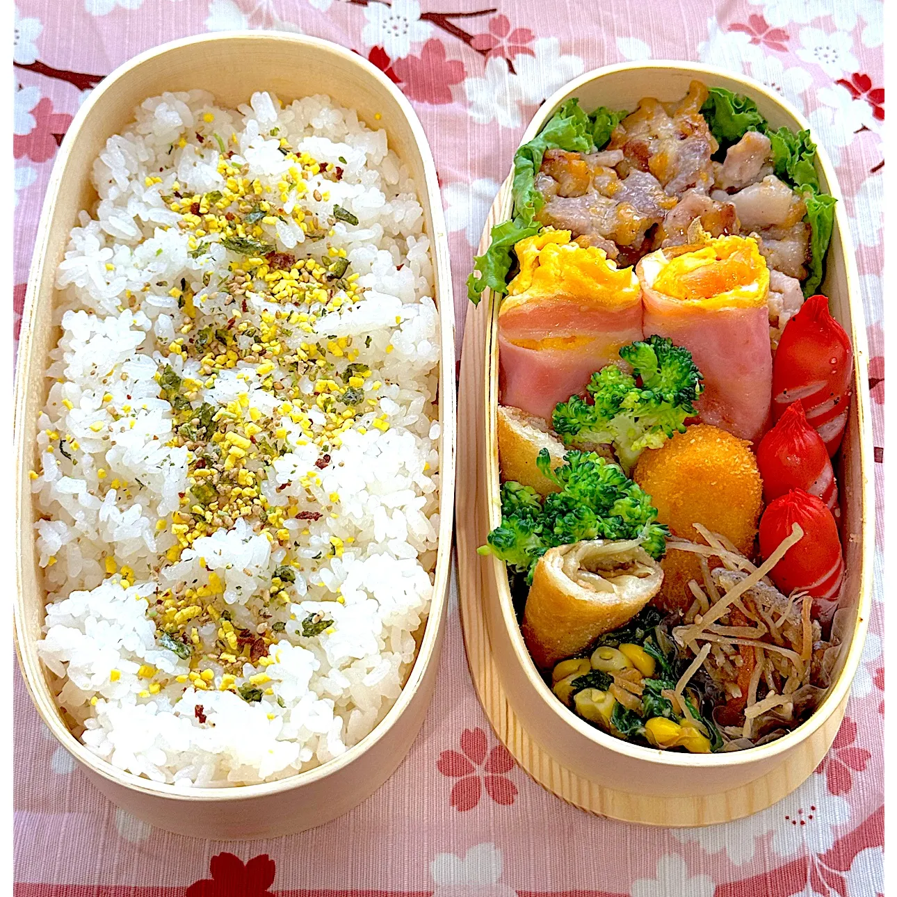 #豚こまチーズ#ベーコン玉子巻き#きんぴらごぼう