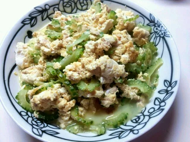 ゴーヤのわたをとり、多めの塩をもみこみ、しばらくおいて水出ししてから使うと丁度いい苦味になるよ!