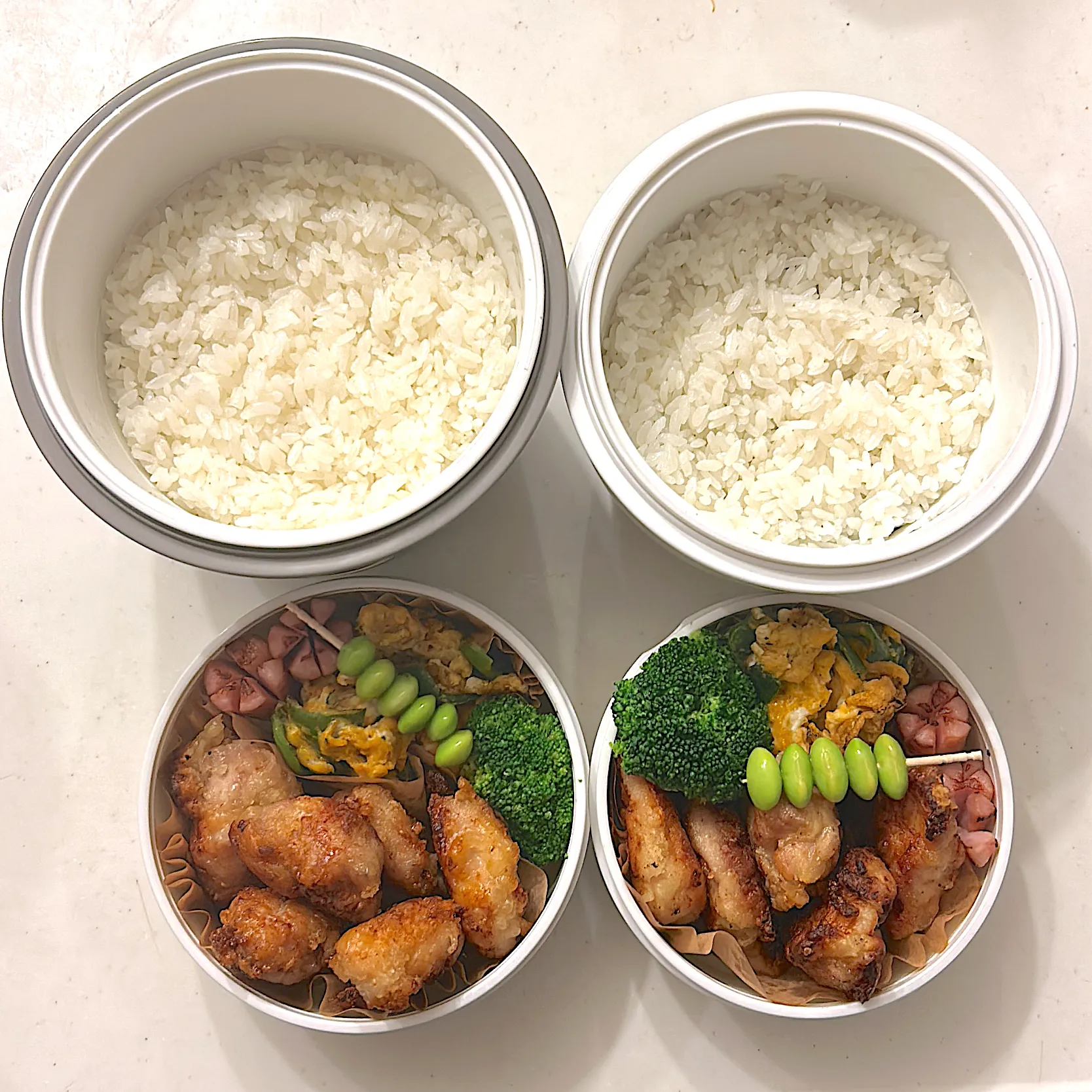 鶏の唐揚げ ピーマン卵炒め シャウエッセン ブロッコリー 枝豆 のり弁
