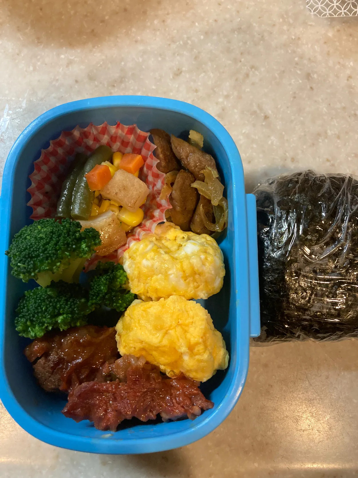 日曜日に買い出し行かなかったからお弁当の材料がなく何とかお姉ちゃんの分だけ作ってみた。卵焼きは電子レンジ。 #BENTO #お弁当 #bento