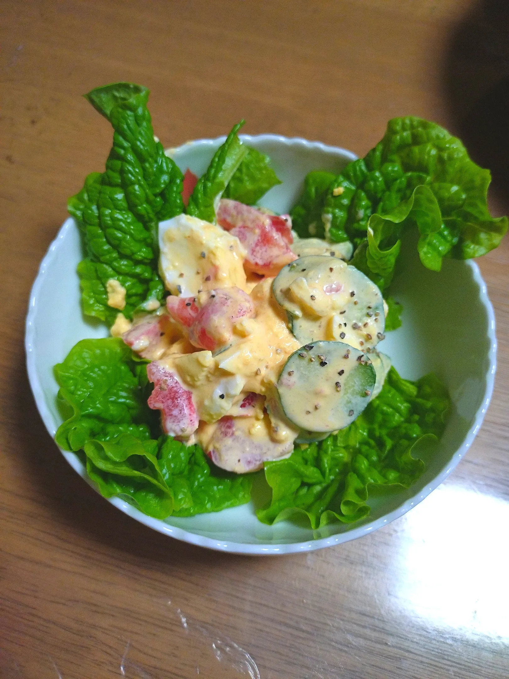 急に混ぜちゃえ!ってなってたまごとキュウリとトマトのサラダがたまごサラダに変身😆