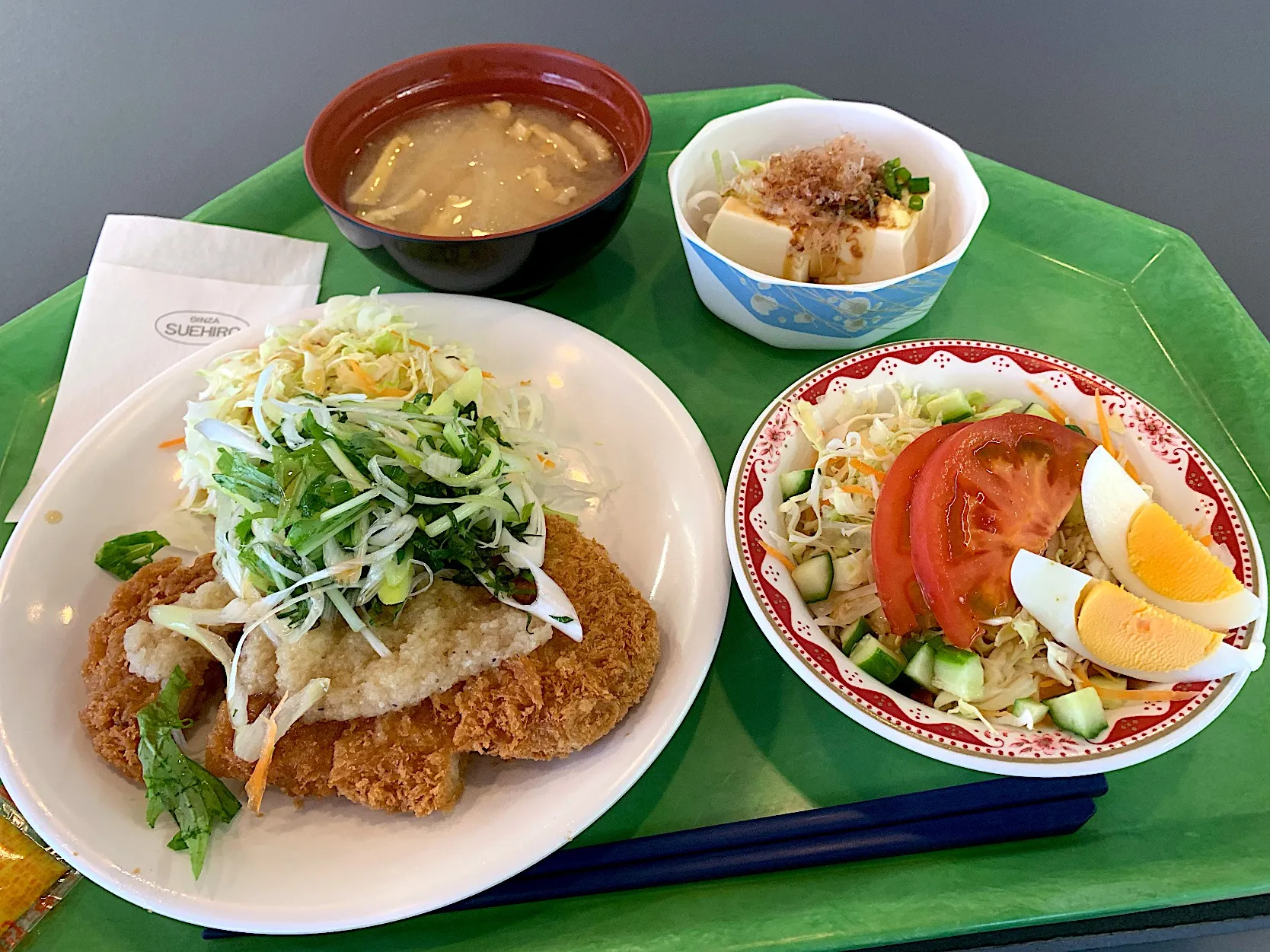 和風ねぎおろしとんかつ、冷奴、ミックスサラダ、味噌汁