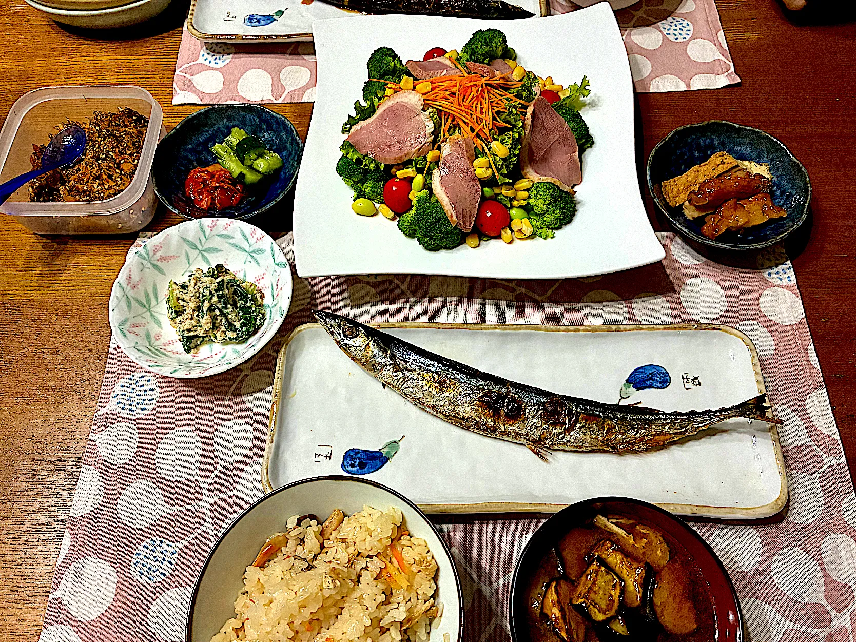夕飯〜秋刀魚・炊き込みご飯・諸々おかず