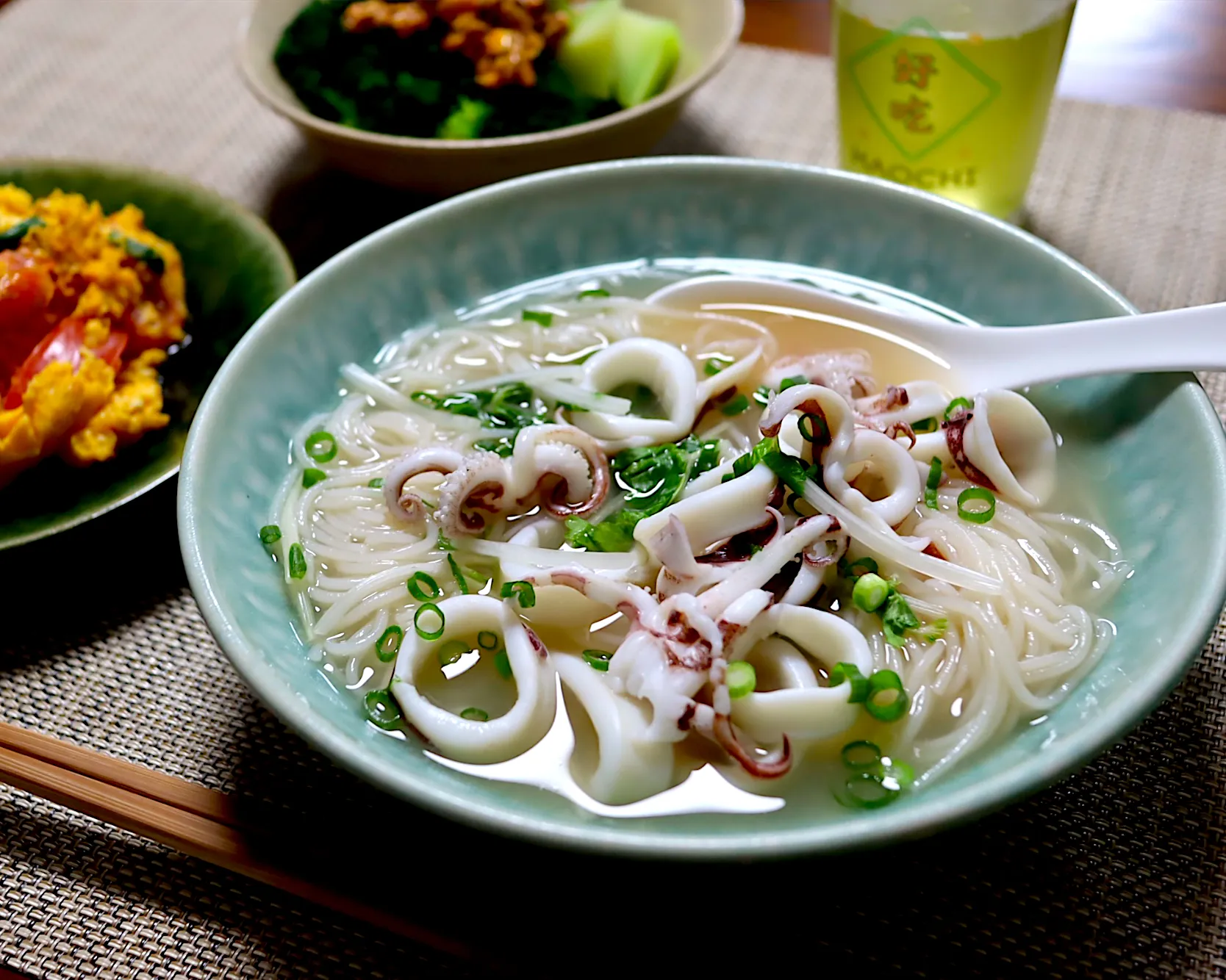 イカの汁ビーフンにしたかったけど、家にビーフンがなかったのでボブンで。