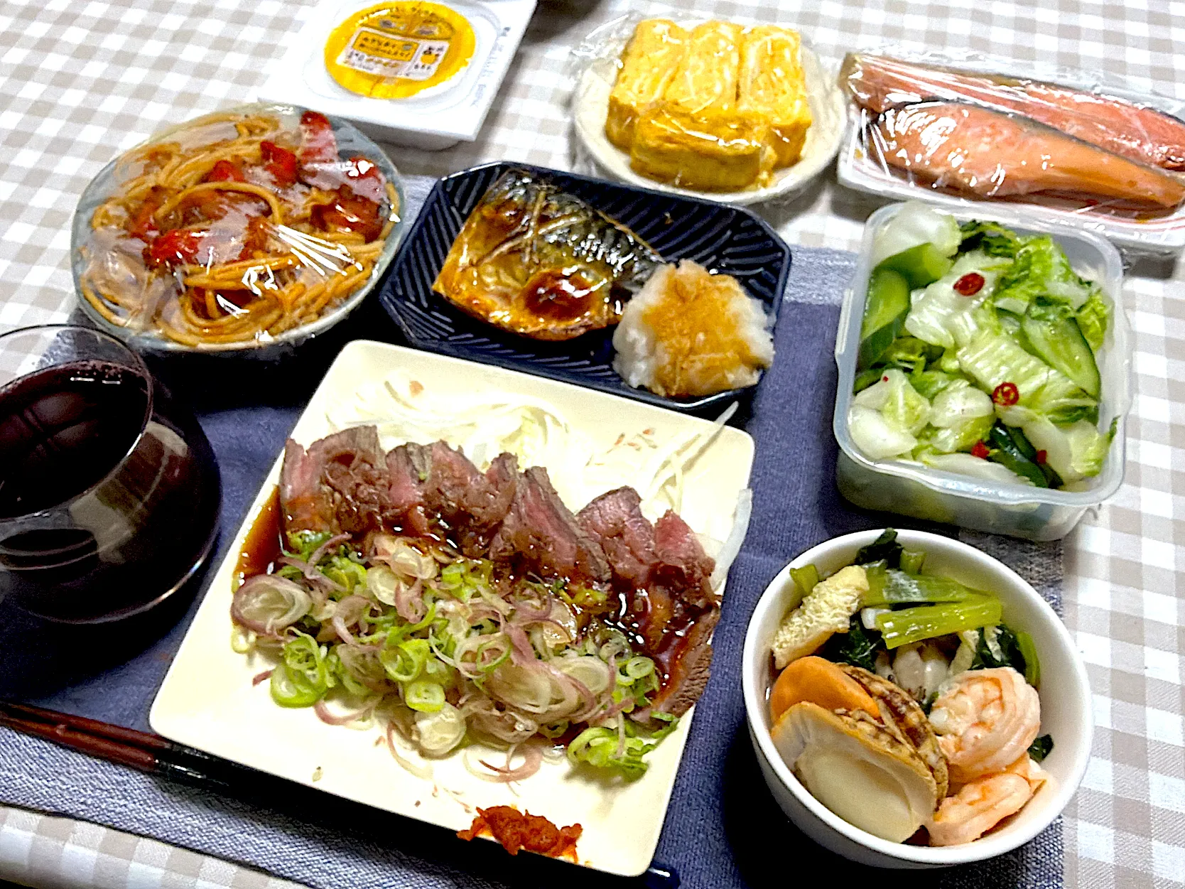 #夕食 #酒の肴 #ローストビーフ #煮浸し #塩サバ #白菜の浅漬け柚子胡椒風味 #お弁当のオカズ